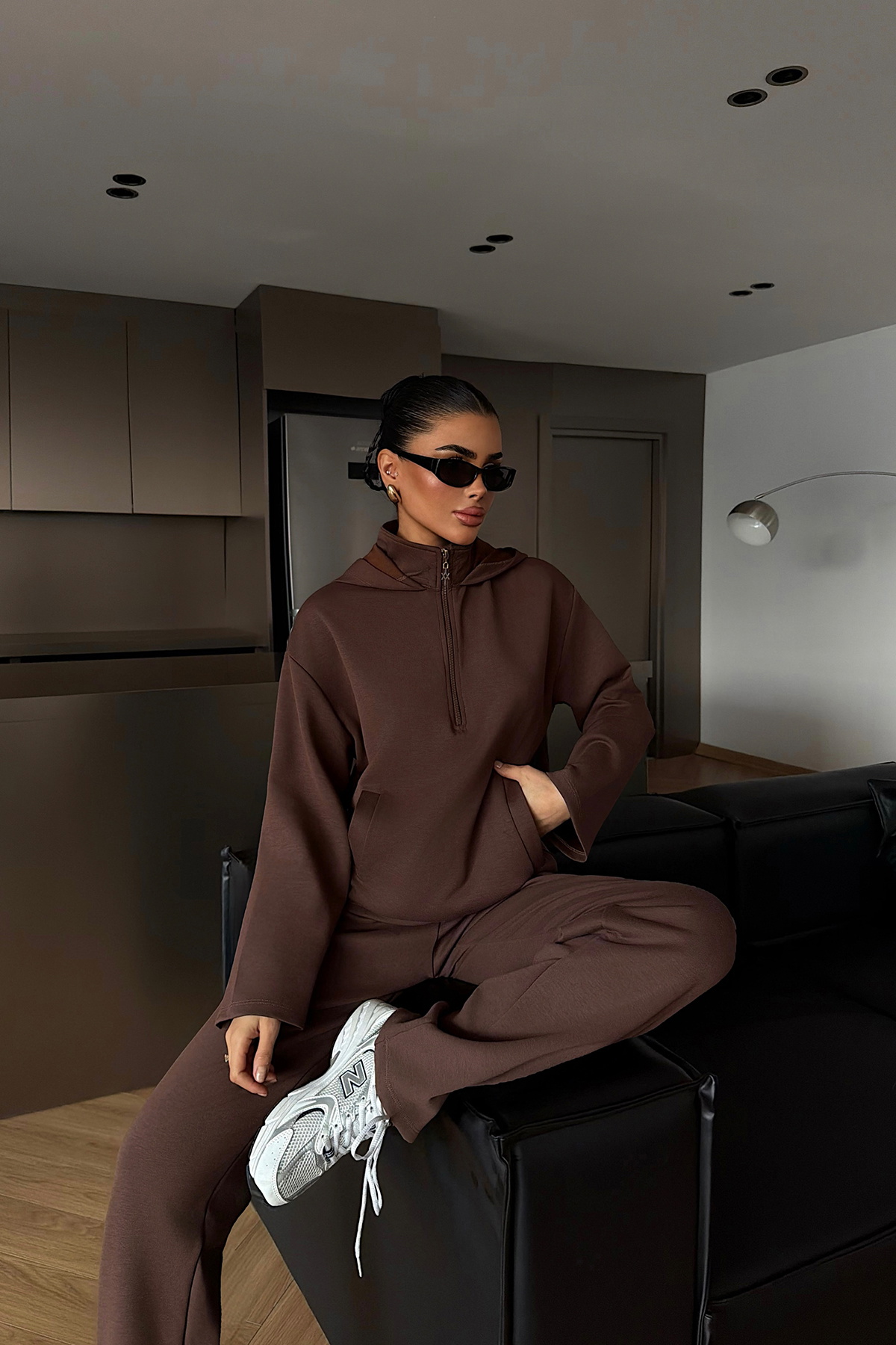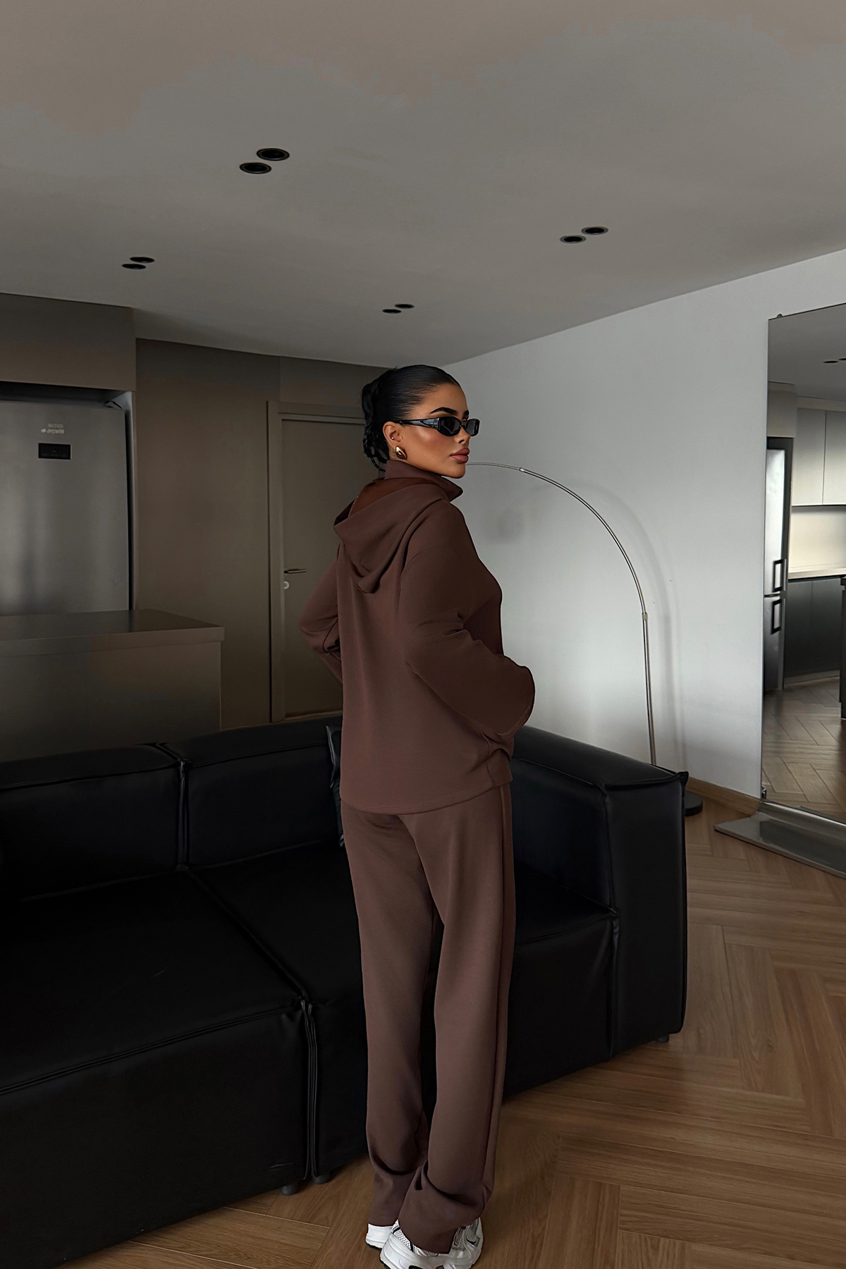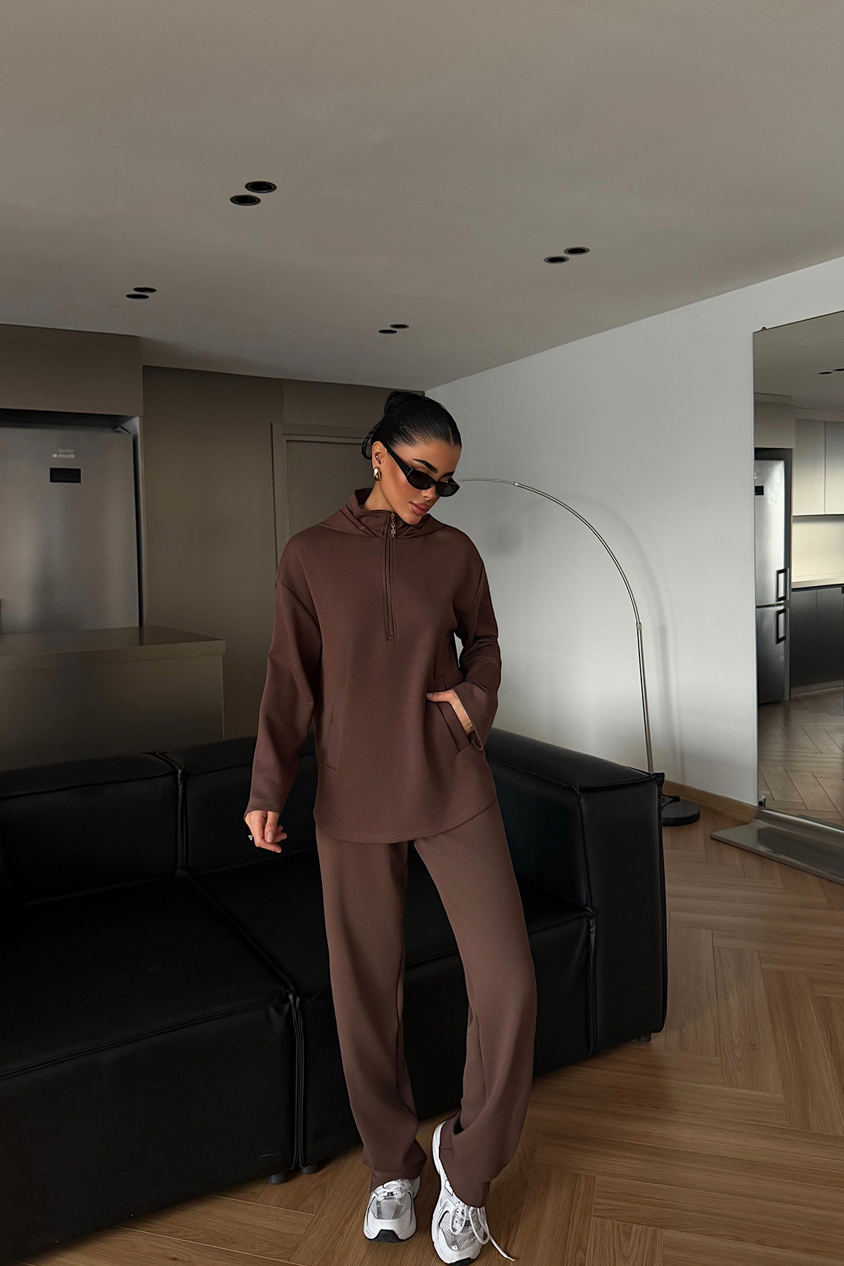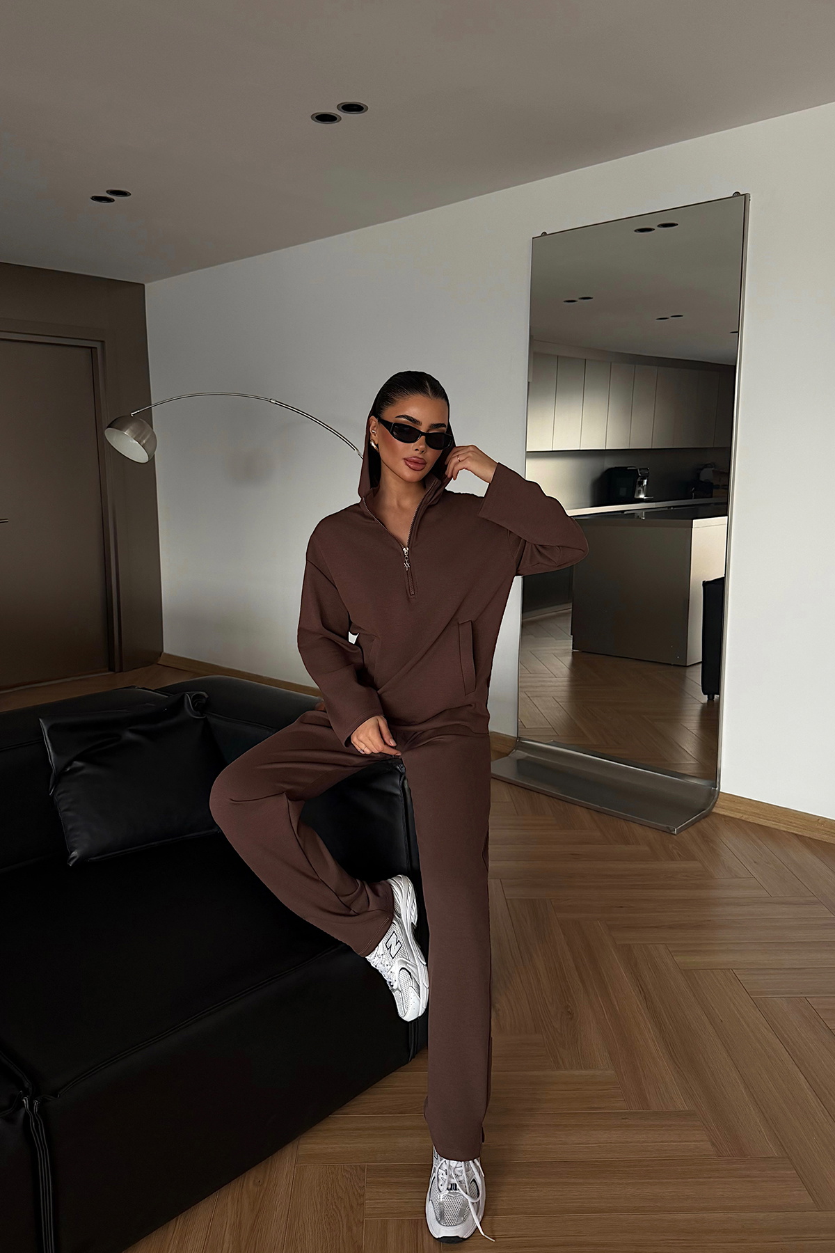 Kahverengi Naerys Fermuar Detaylı Eşofman Takım