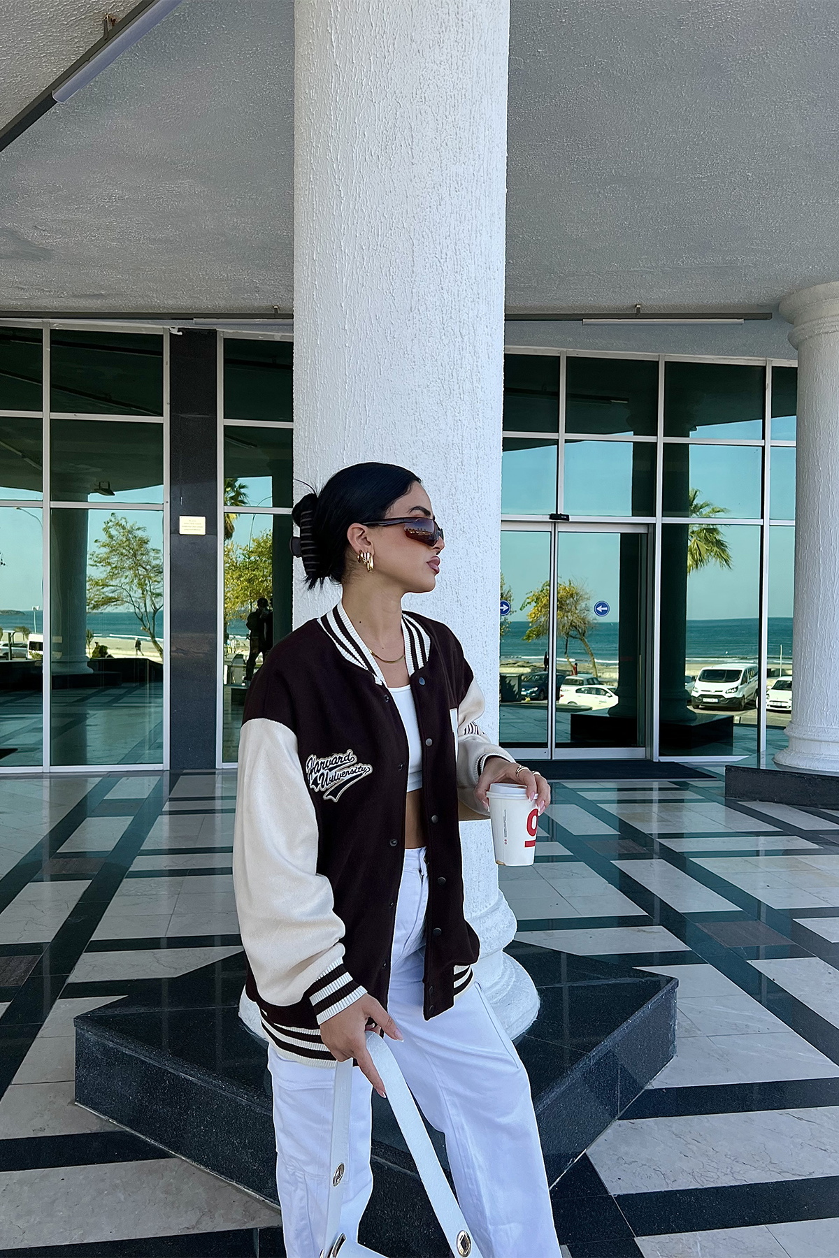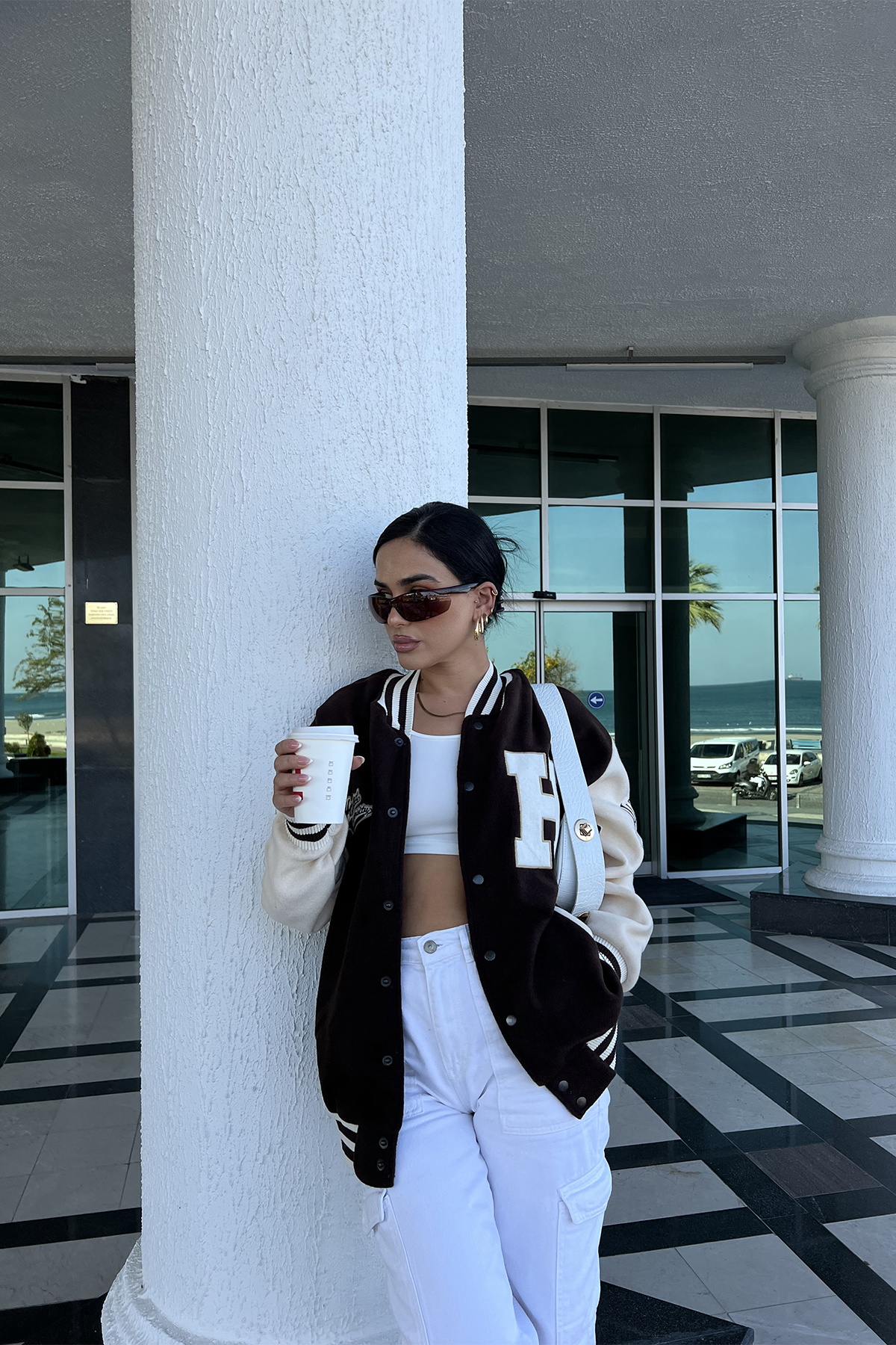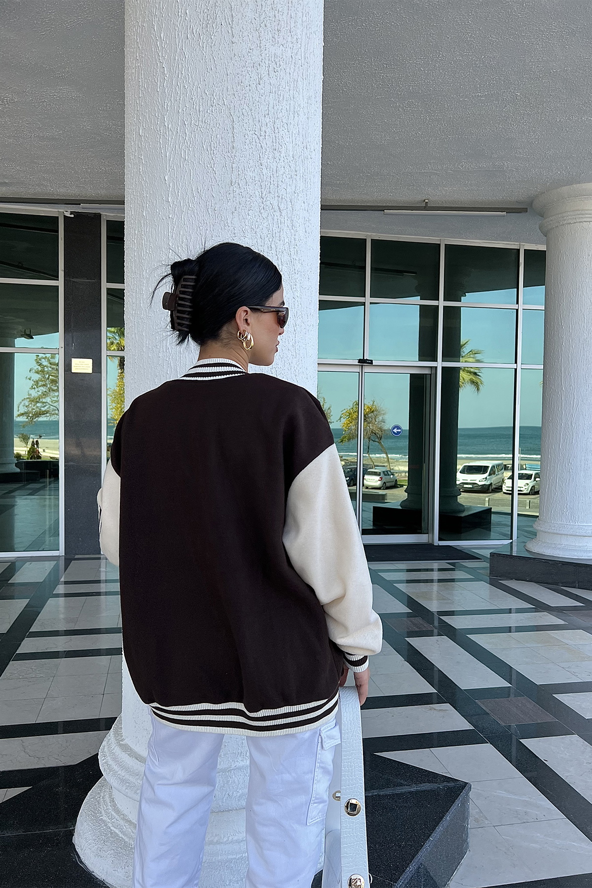 Kahverengi Harf Detay Kolej Ceket ATE2524