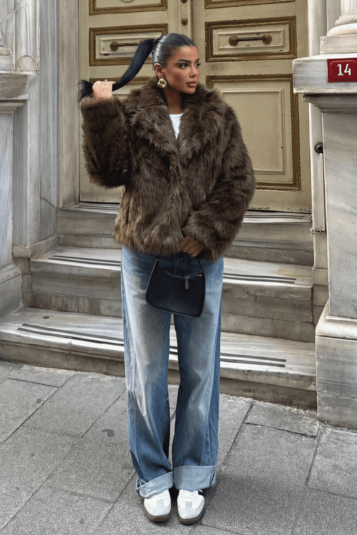 Yoğun dokulu yapısı ve hacimli formuyla öne çıkan kürk, sıcak ve iddialı bir siluet sunar. Yumuşak dokusu ve geniş yakası sayesinde hem konforlu hem de şık bir görünüm sağlarken, kış kombinlerinde güçlü ve sofistike bir stil oluşturur.