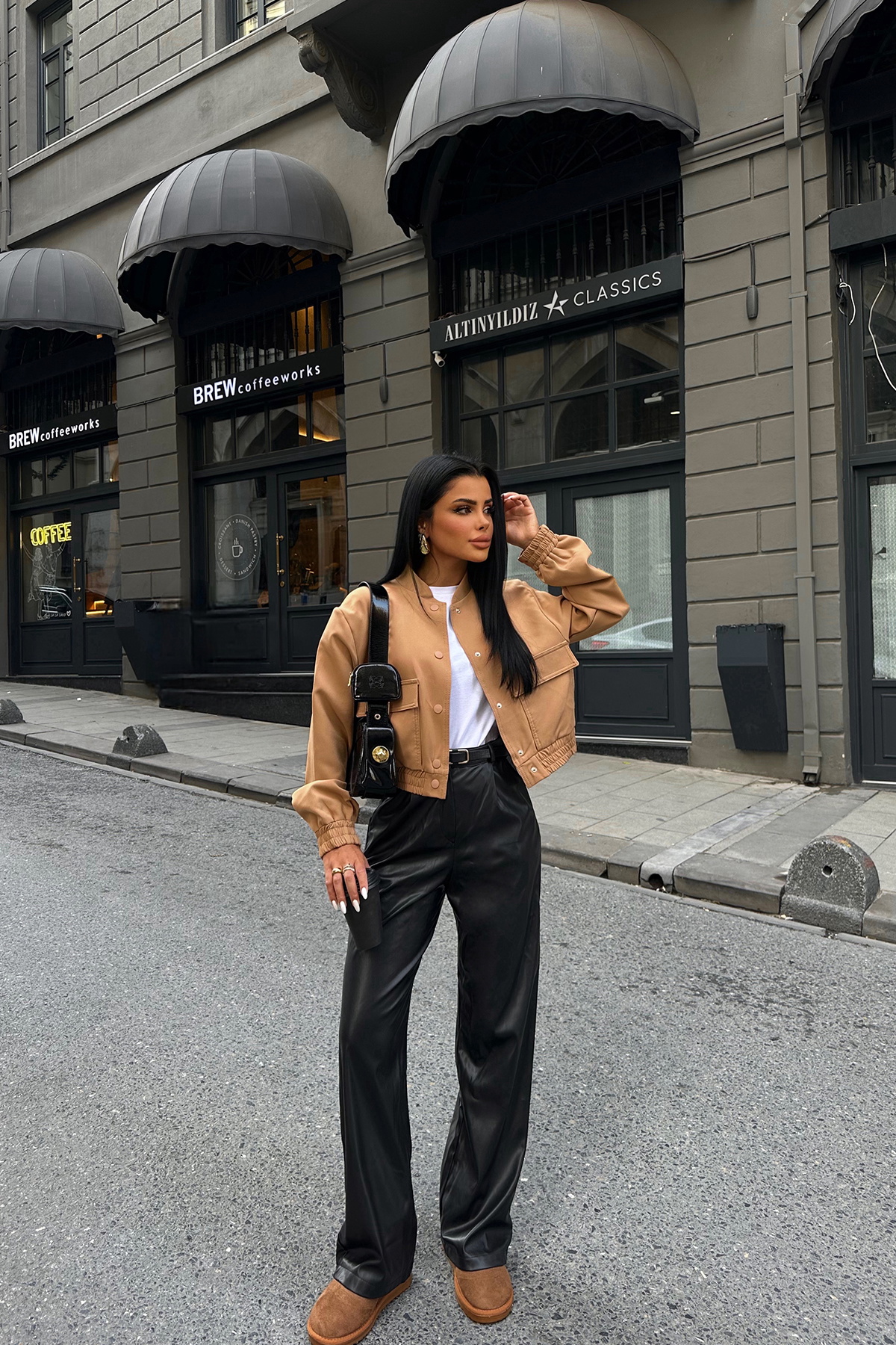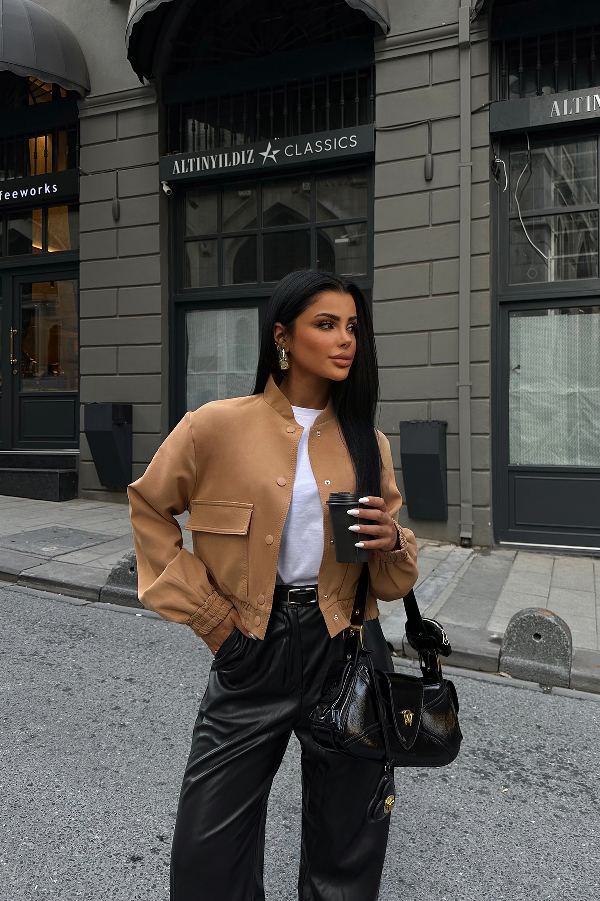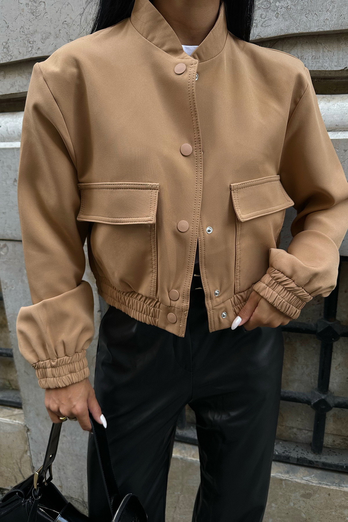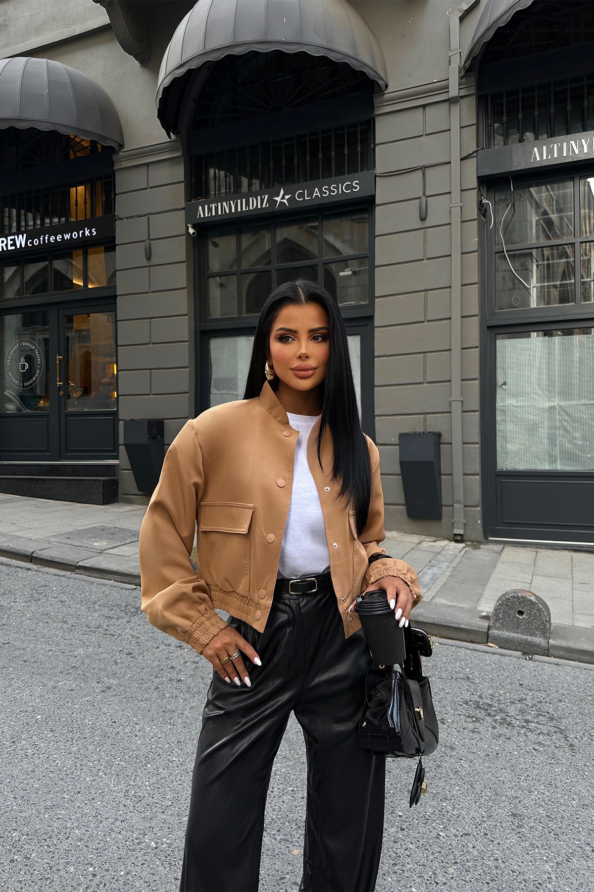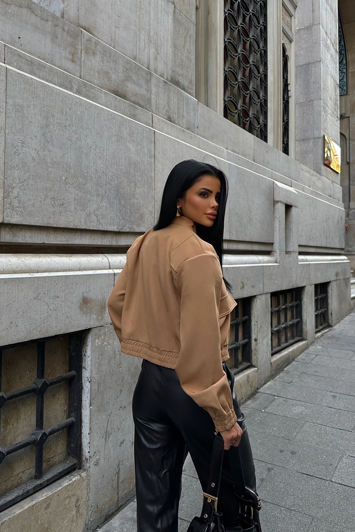 Kahverengi Önü Düğmeli Cep Detay Ceket