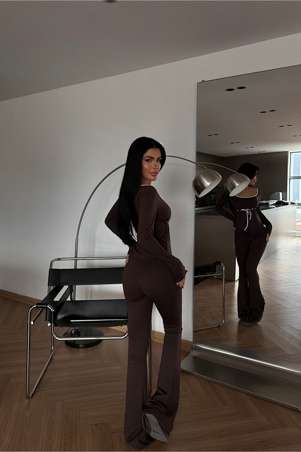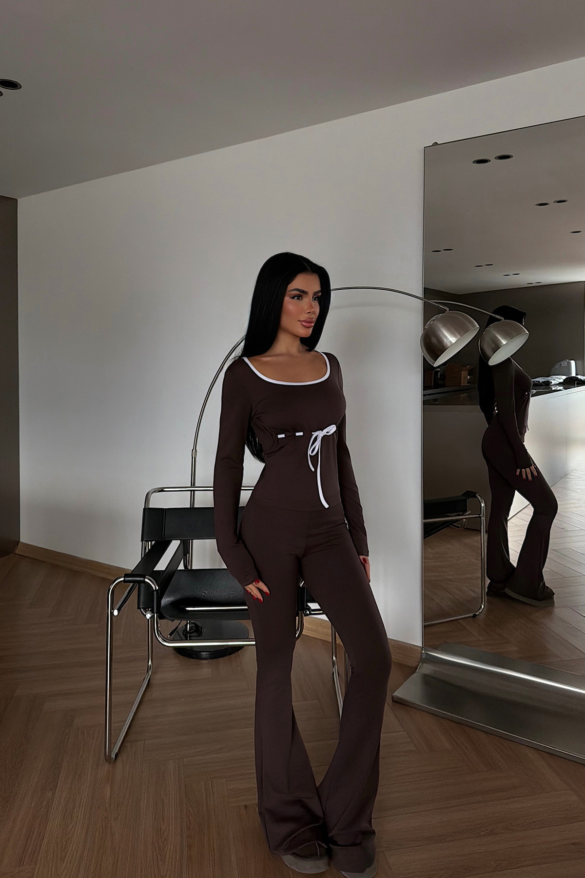 Kahverengi Penxy takım, sportif ruhu enerjik bir renkle buluşturuyor. Bağcıklarla oluşturulan şerit detayları, takımın hem üst hem alt parçalarında dinamik bir görünüm yaratırken; yumuşak ve esnek kumaşı gün boyu rahatlık sağlar. Üst kısmı nefes alabilen kesimiyle ferah bir his veri