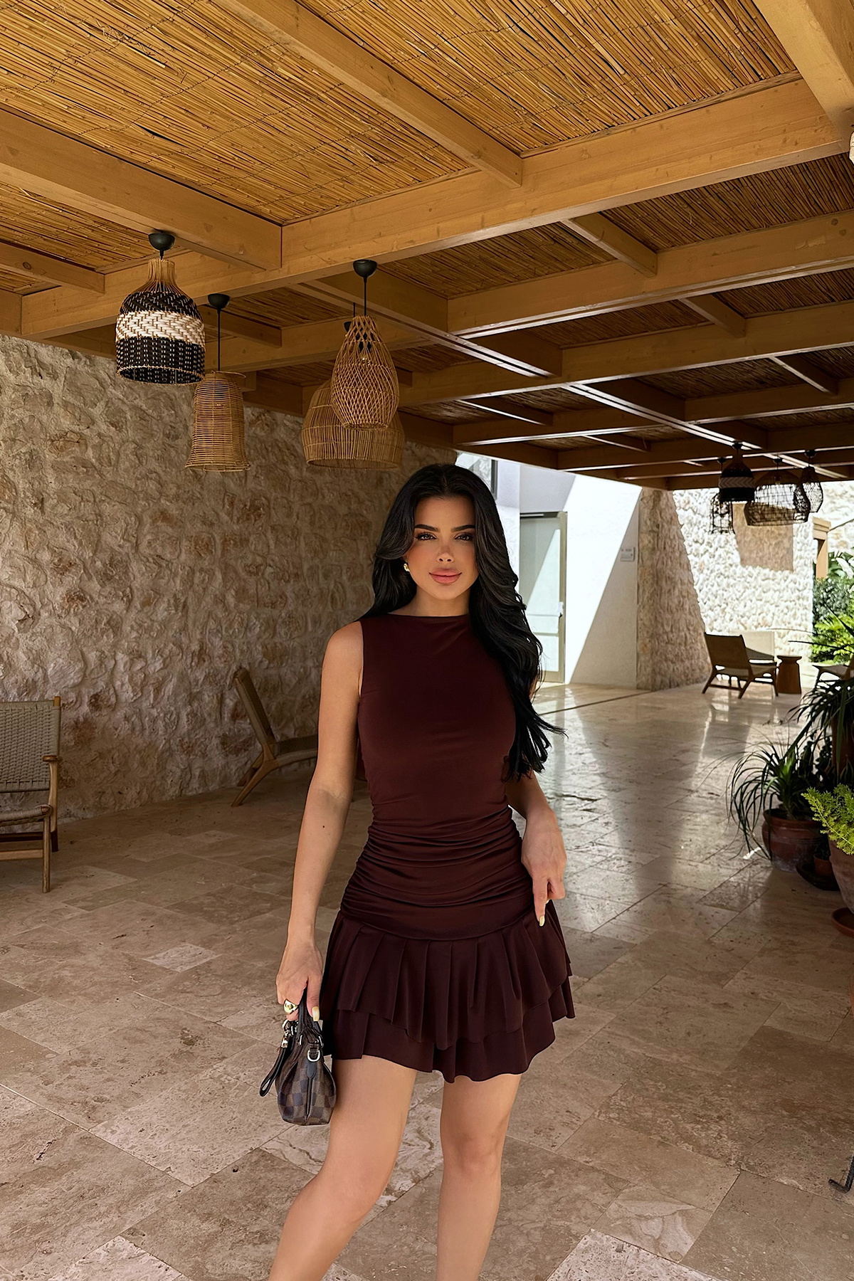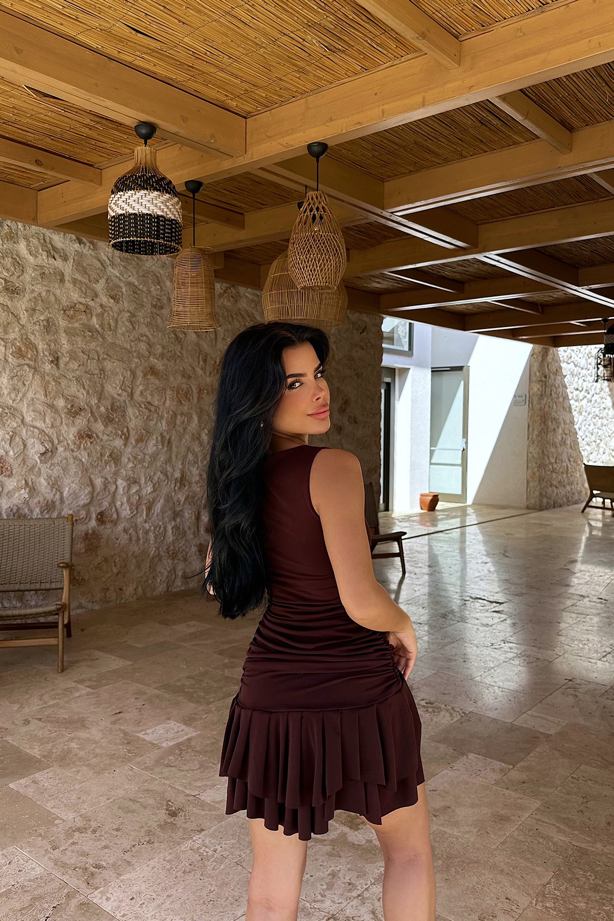 Kahverengi Jacie Mini Elbise