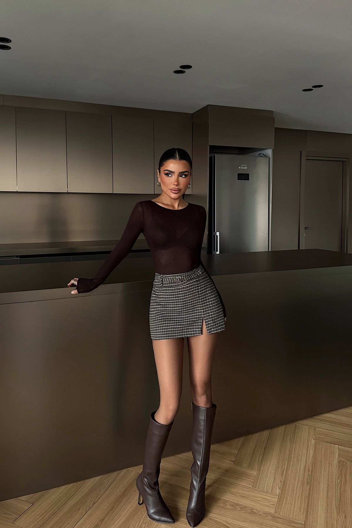 Yarı transparan yapısı ve vücuda oturan formuyla öne çıkan uzun kollu üst, sade ve modern bir görünüm sunar. İnce dokusu sayesinde hafif bir duruş sağlarken, minimal tasarımıyla günlük kombinlerden şık görünümlere kadar kolayca uyum sağlar.