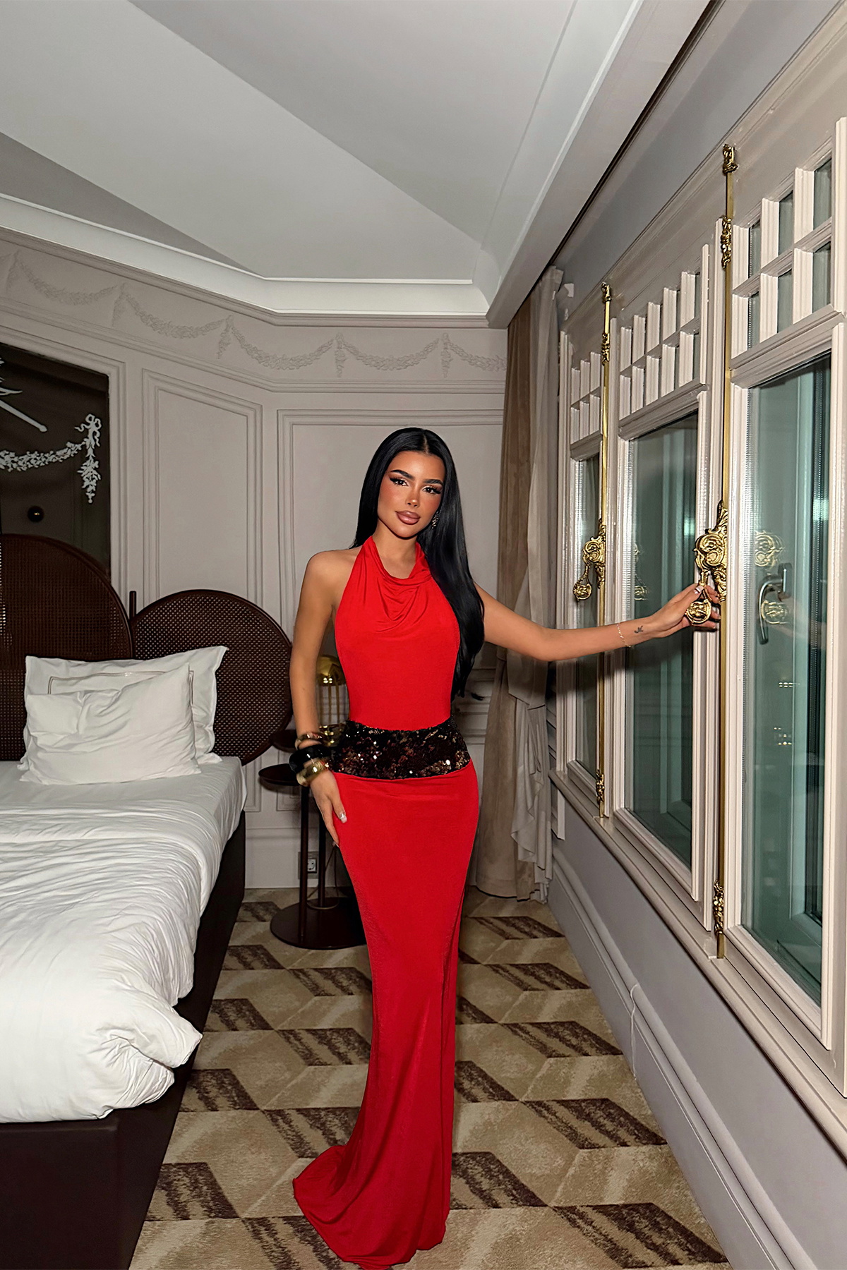 Kırmızı Dantel Detay Uzun Elbise