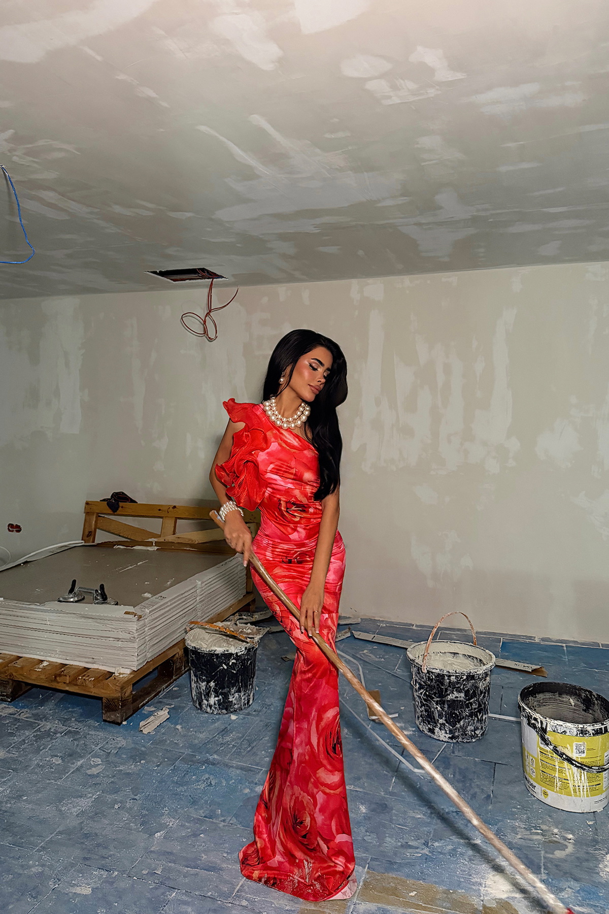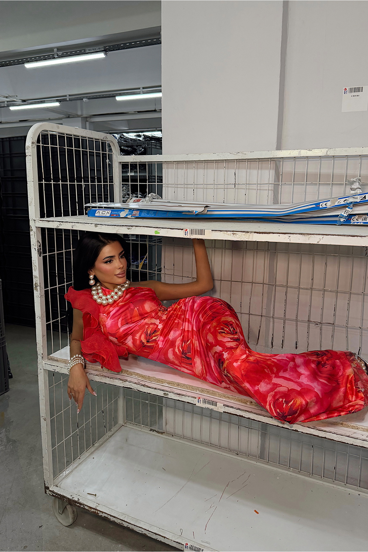 Canlı renk geçişleri ve dikkat çekici deseniyle öne çıkan bu uzun elbise, feminen ve iddialı bir stil sunar. Tek omuz formu ve omuz kısmındaki volan detayı tasarıma hareket kazandırırken, vücuda oturan kalıbı zarif bir siluet oluşturur.
