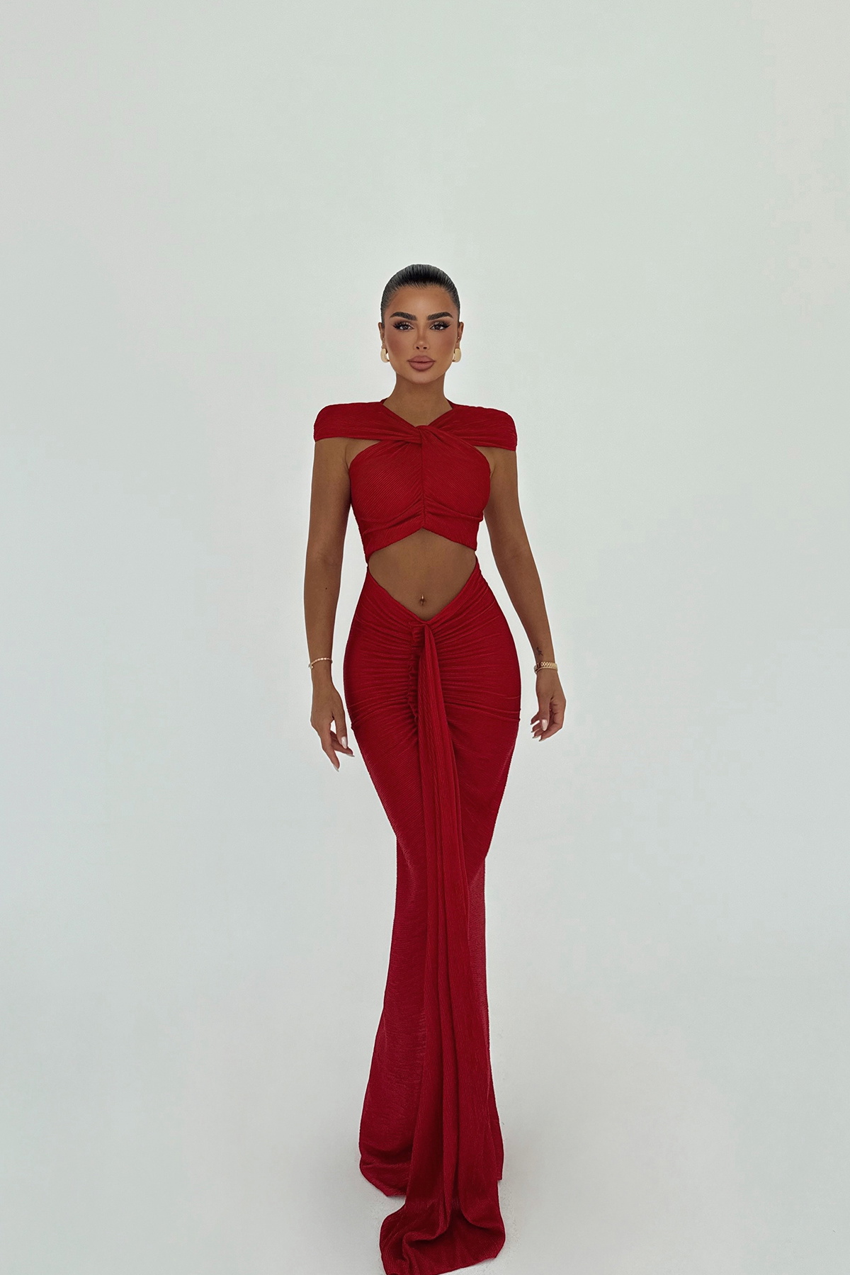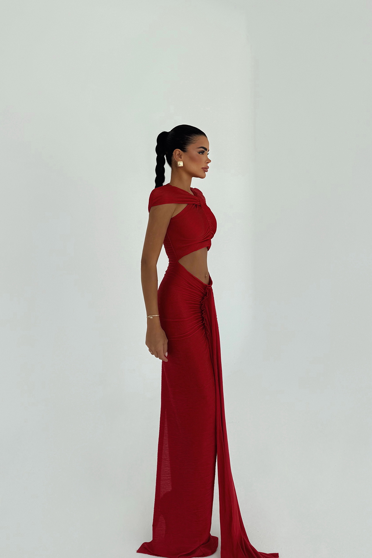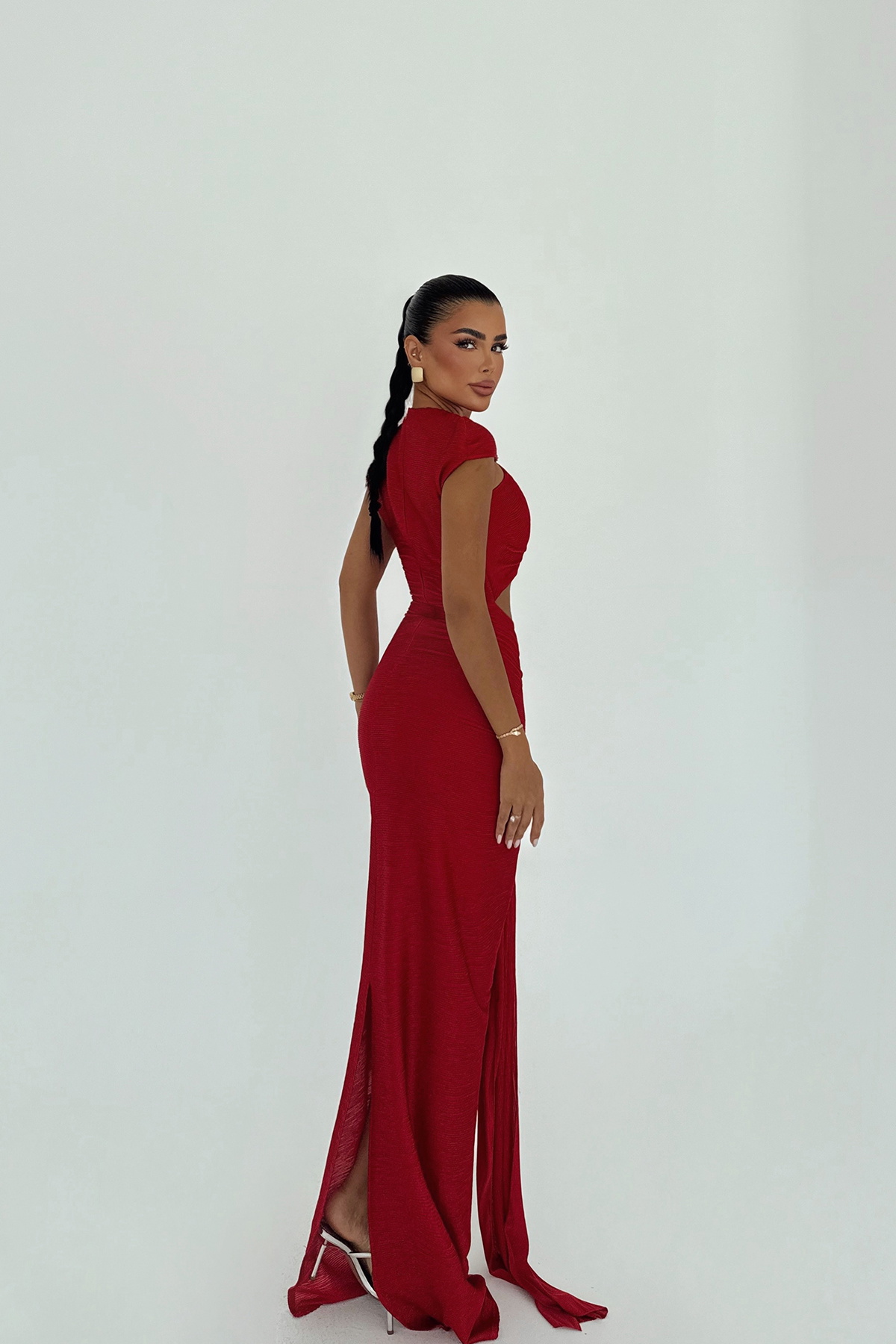 Kırmızı Orleans Uzun Elbise