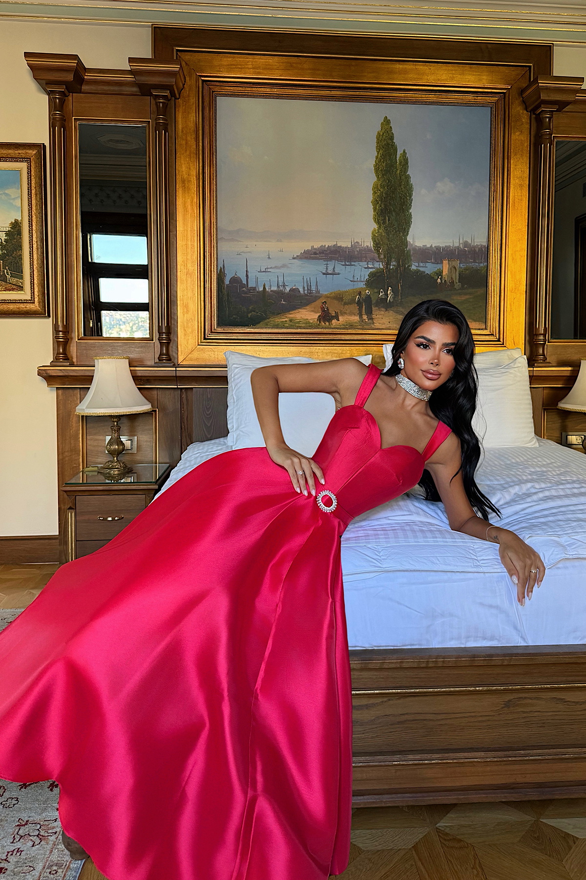 Klasik canlılığını taş toka detaylarıyla taçlandıran Lindsay Abiye Elbise, her davetin gözdesi olmaya adaydır. İnce askıları, vücuda oturan kesimi ve taş toka süslemeleri ile feminen bir siluet sunar. Işıltılı tokalar, elbiseye zarif bir dokunuş katarken dikkatleri üzerinize çeker.