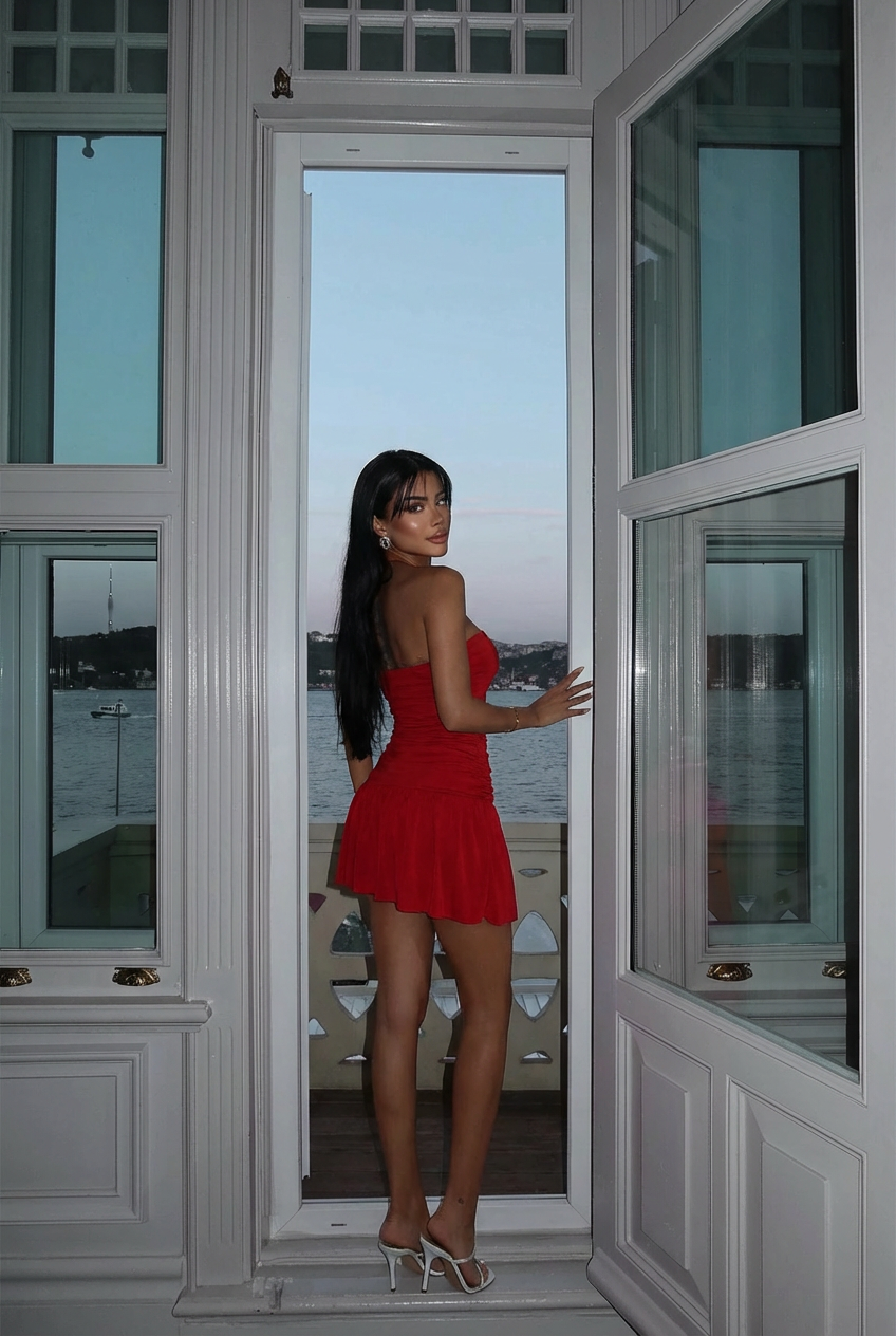 Kırmızı Jody Mini Taş Aksesuarlı Elbise