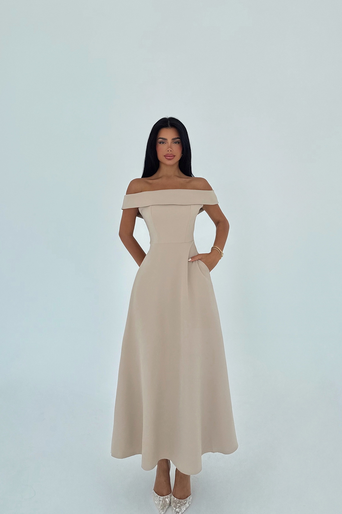 Krem Creil Elbise – Zarif ve Sade Tasarım