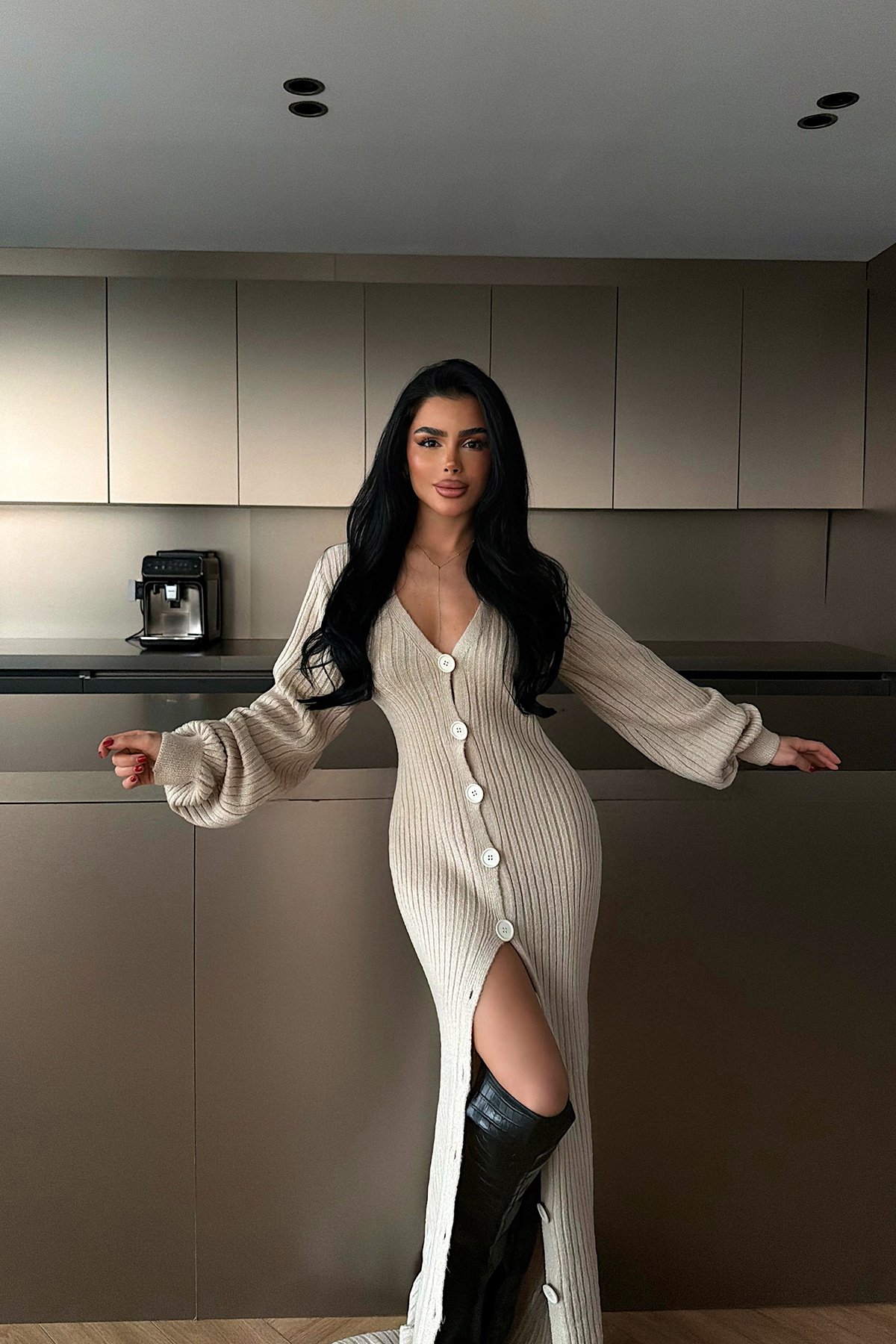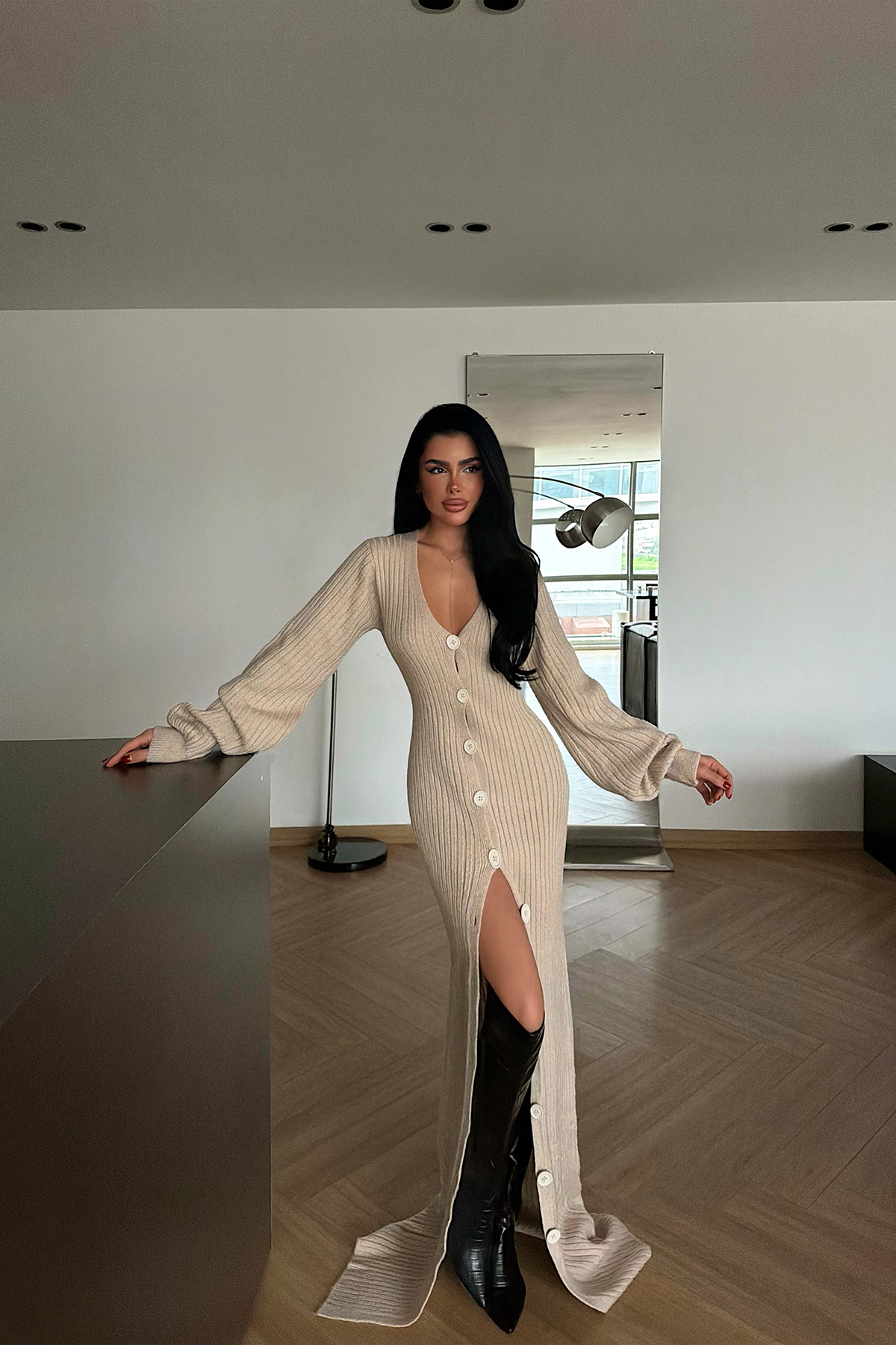 Ön kısmındaki düğme kapama ve yırtmaç detayı, tasarıma modern bir hareket kazandırırken konforlu yapısıyla gün boyu rahatlık sağlar. Uzun kollu tasarımı ve akıcı dokusu sayesinde hem günlük şıklıkta hem de özel kombinlerde tercih edilebilecek zamansız bir parçadır.