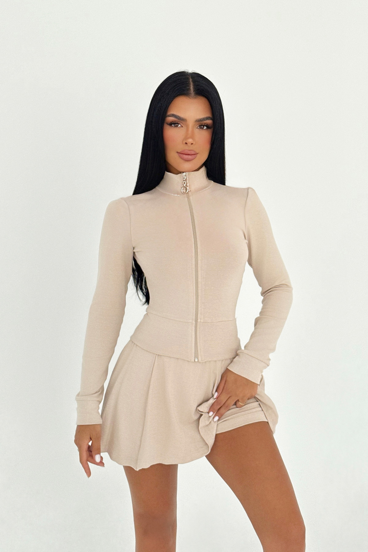 Krem Lola Şort Etekli Takım – Modern ve Feminen Tasarım