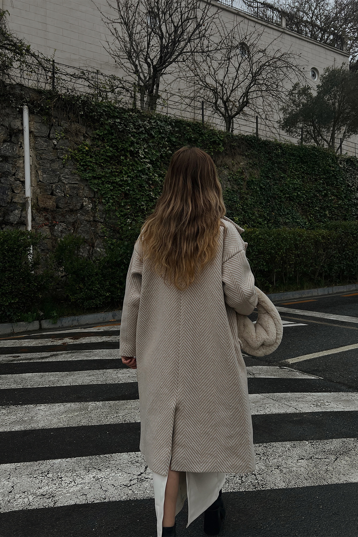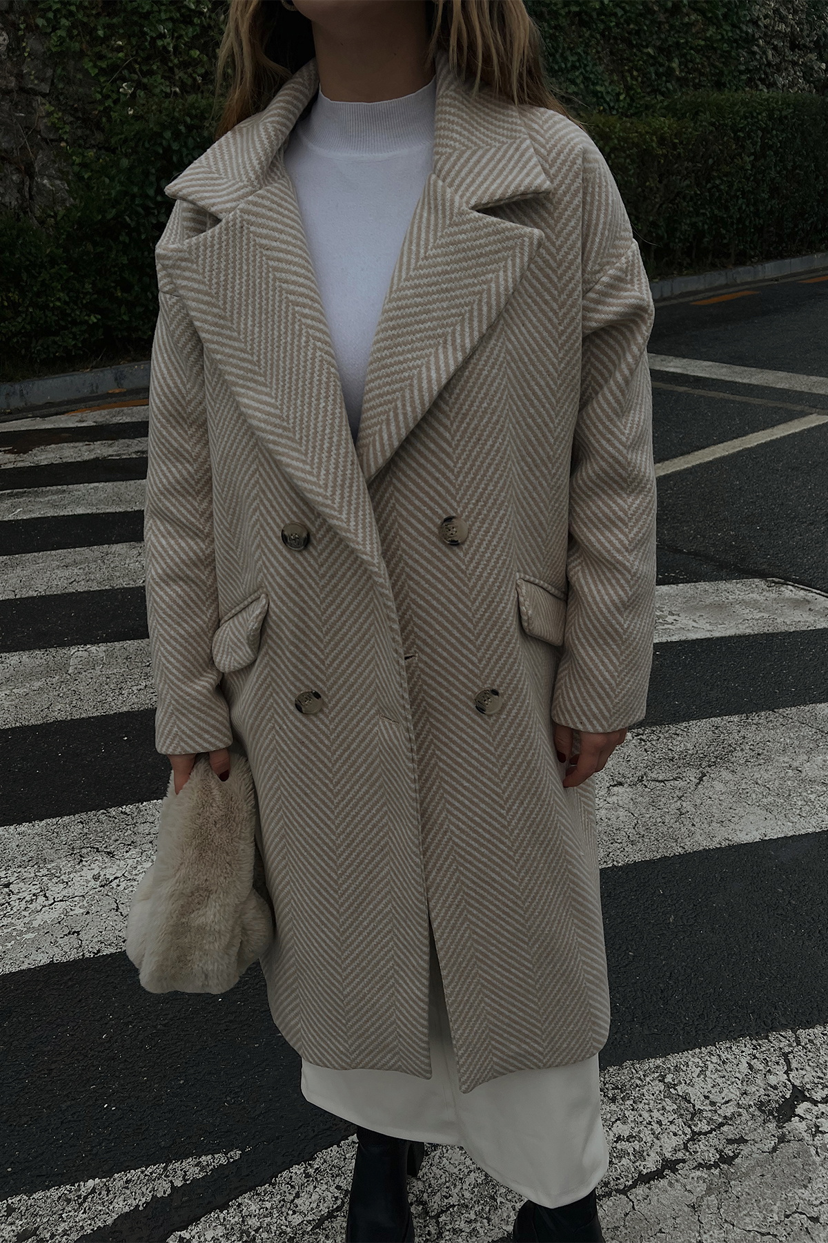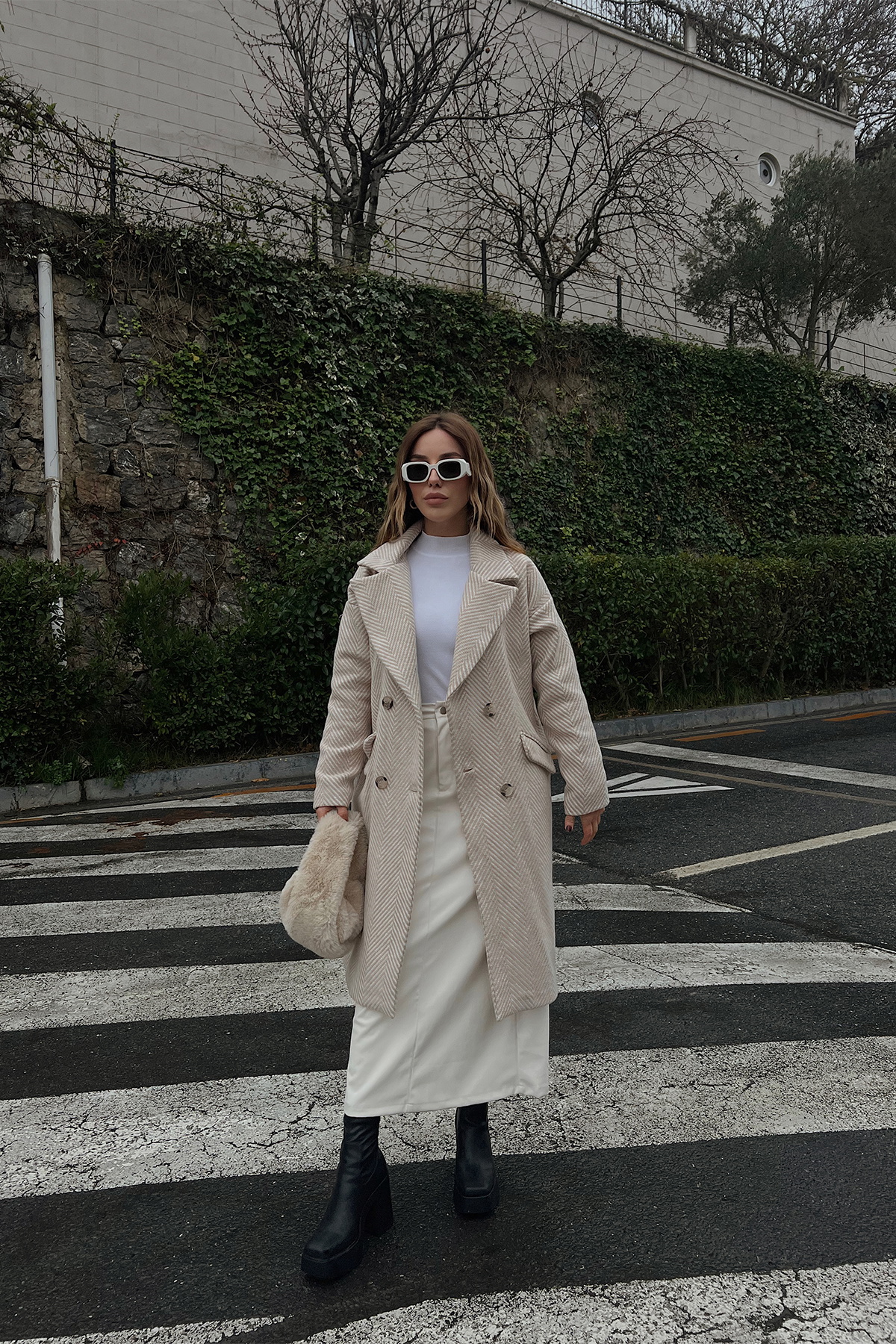 Krem Kruvaze Yaka Düğmeli Kaban – Zamansız ve Sofistike