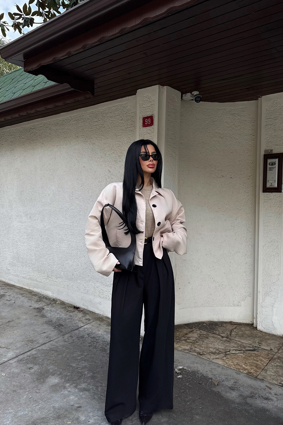 Düğmeli tasarımı ve kısa kesimiyle öne çıkan trençkot, tok dokulu yapısı sayesinde modern ve net bir siluet sunar. Geniş yaka formu ve rahat kalıbı şehir stilinde hem günlük hem de şık kombinlerle kolayca uyum sağlar.