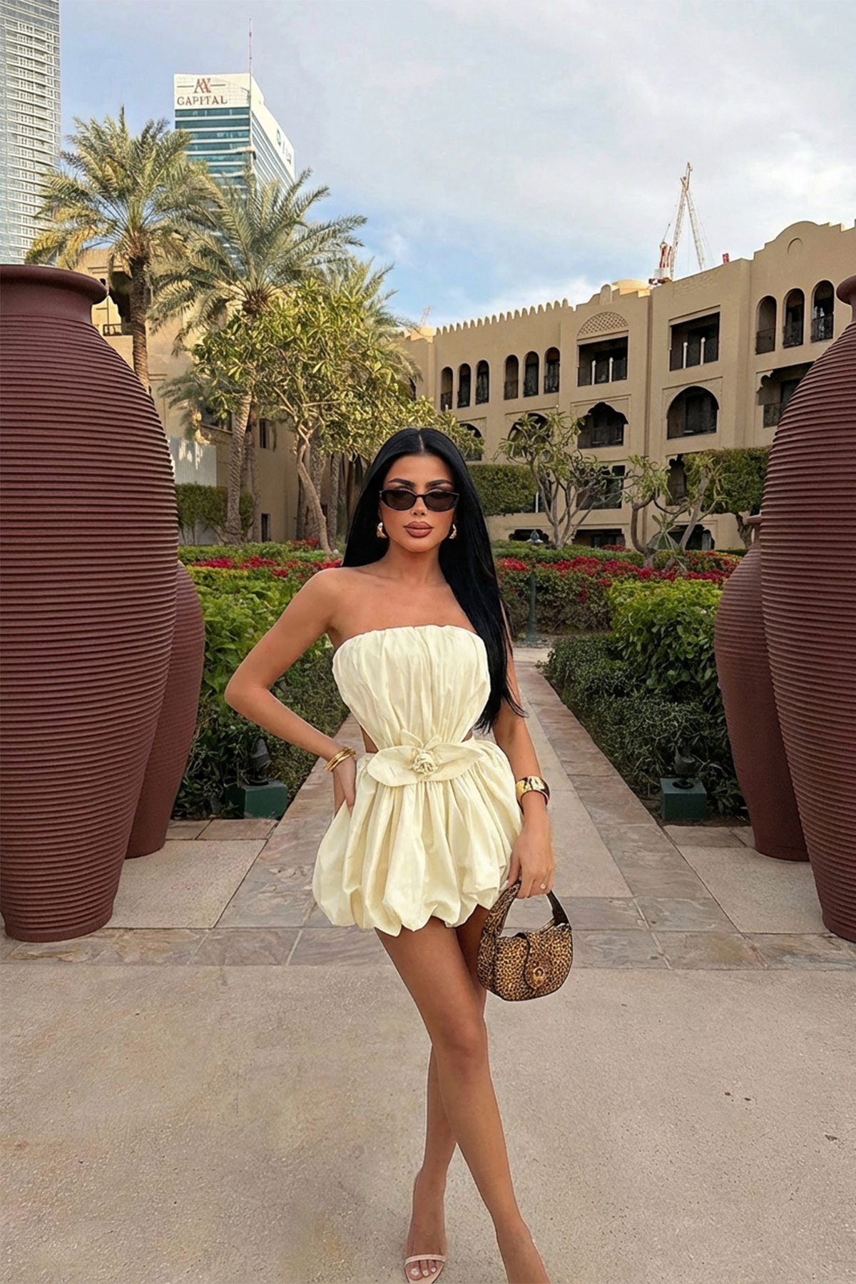Krem Senda mini elbise, sade ve şık tasarımıyla feminen bir duruş sunar. Kısa kesimi enerjik ve modern bir görünüm sağlar. Akıcı kumaşı sayesinde hem konforlu hem de özel davetlerde etkileyici bir kullanım imkanı verir.