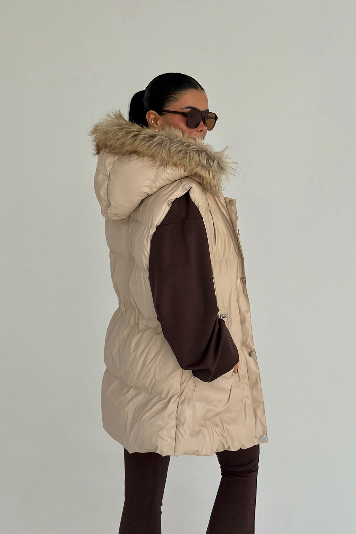 Krem Cloveyx tüylü şişme yelek