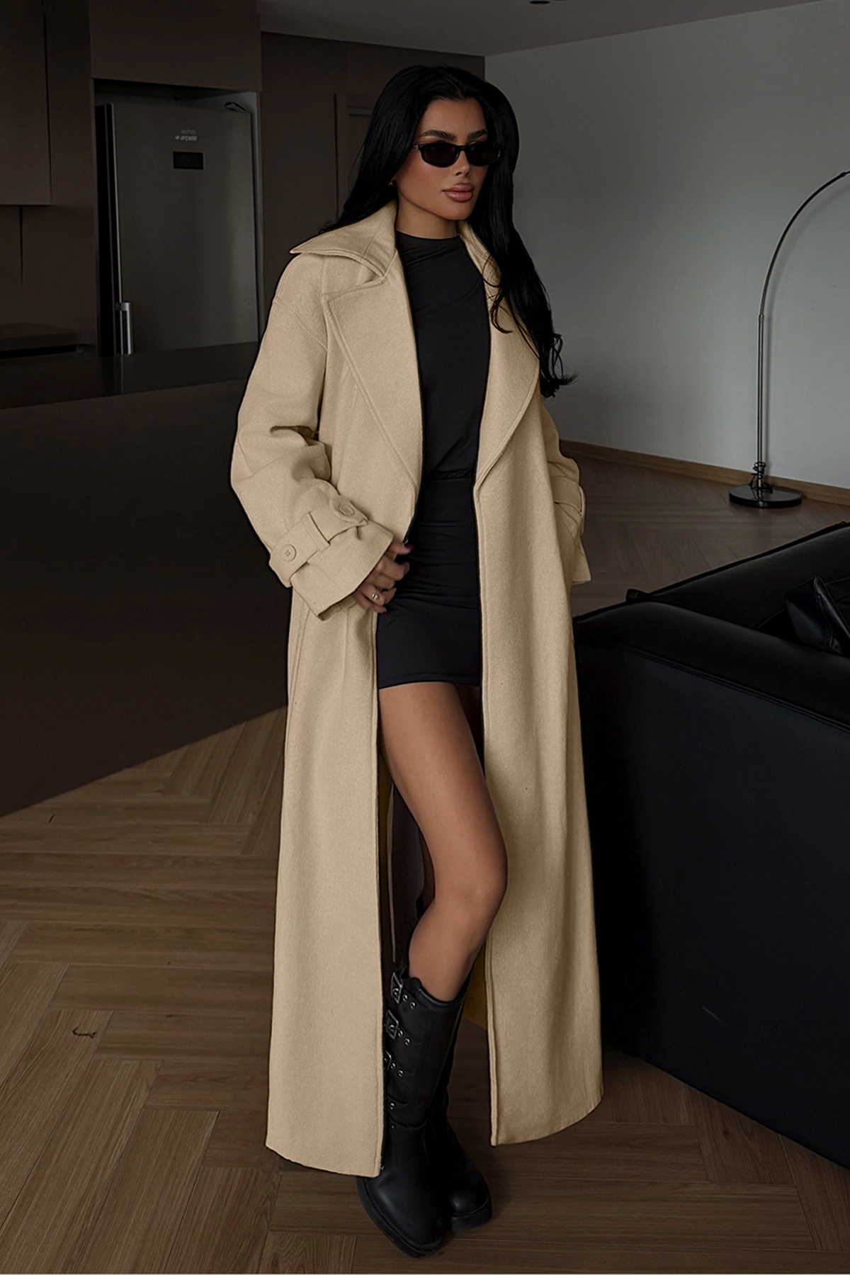 Zarif acı kahve tonuyla sunulan bu uzun kaban, klasik hacimli formu ve konforlu kesimiyle stilinizi gün boyu tamamlar. Diz altı uzunluğu, net çizgileri ve sıcak renk paleti sayesinde hem şehir stilinde hem de ofis kombinlerinde ön plana çıkar.