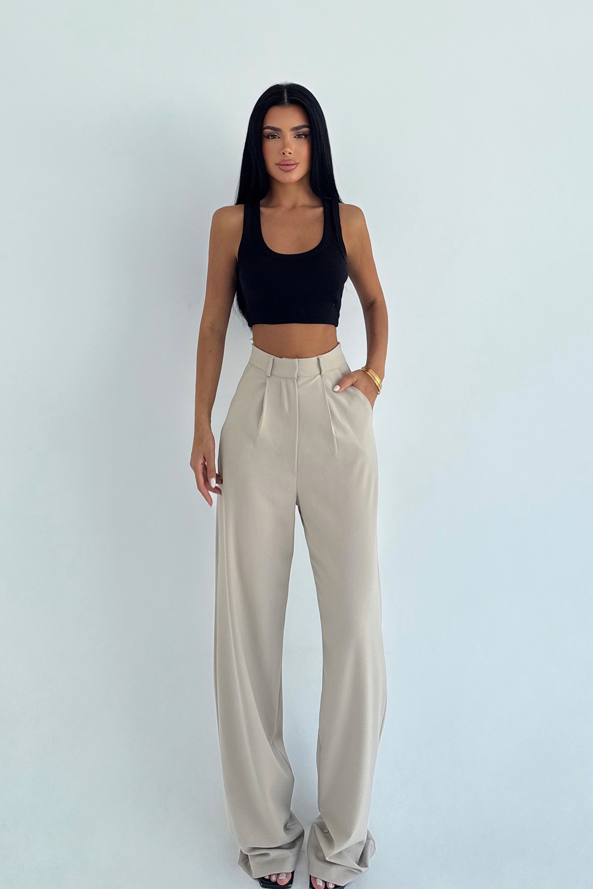 Krem Sorine Yüksek Bel Pantolon – Sade ve Şık