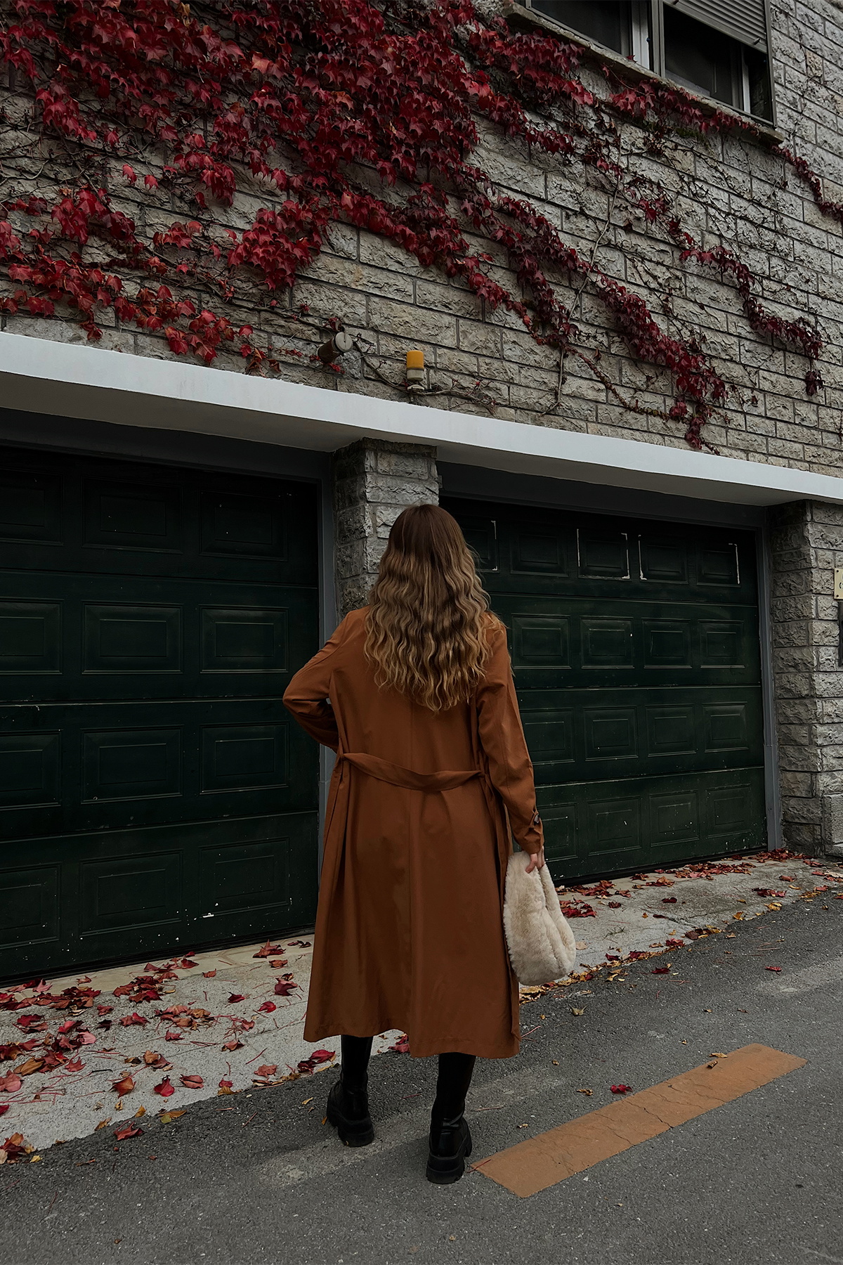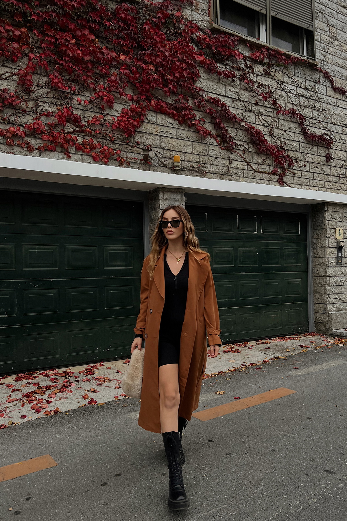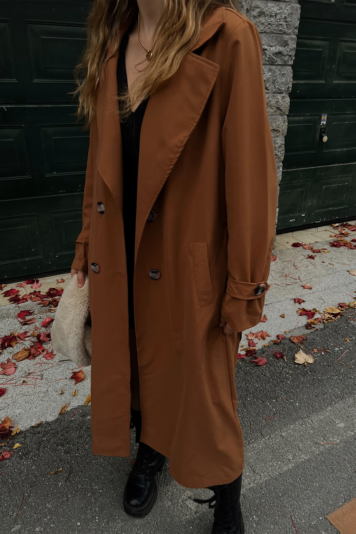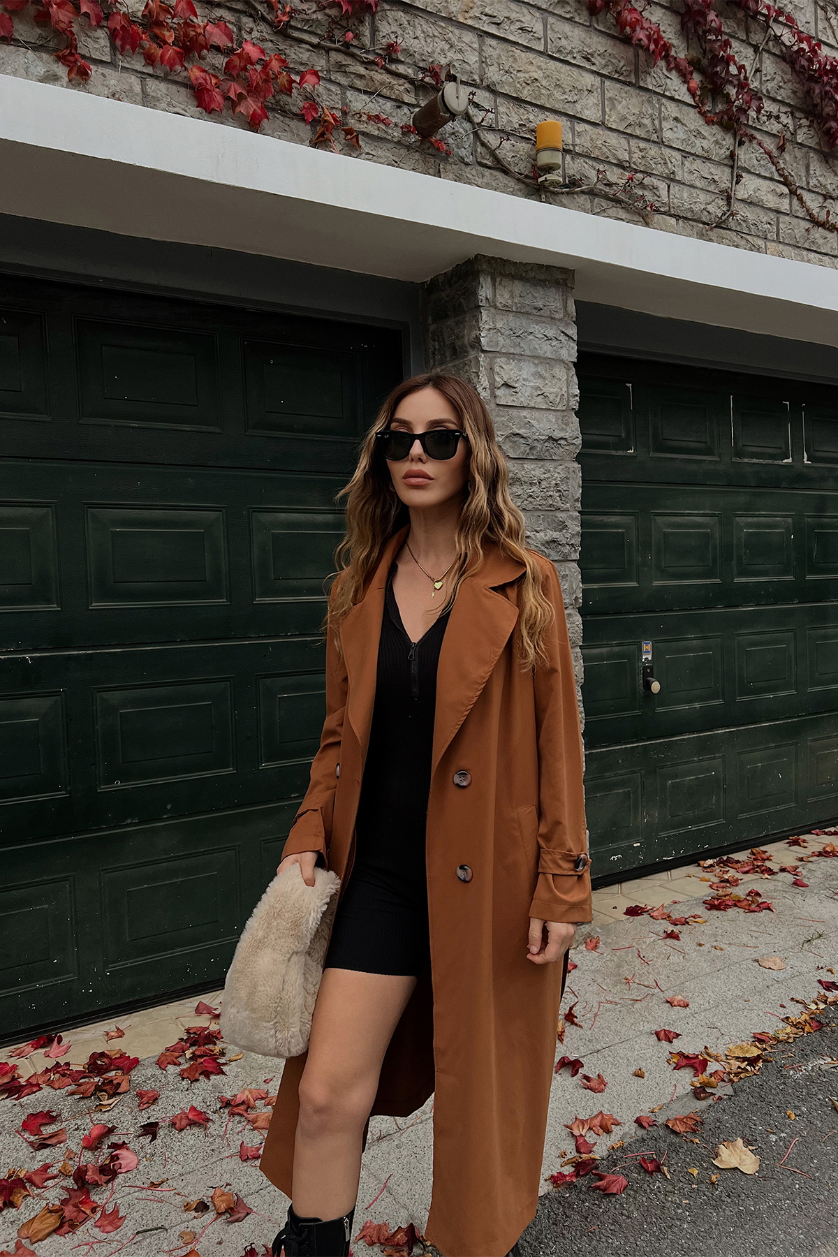 Kruvaze Yaka Önü Düğmeli Trenckot