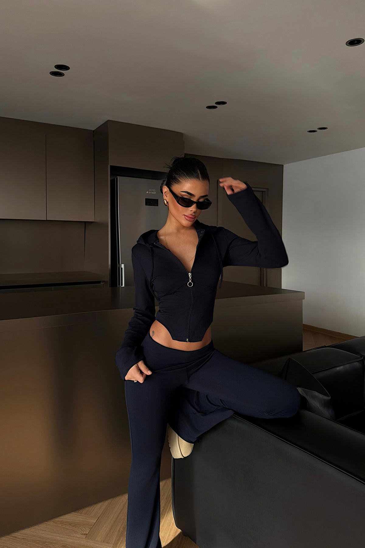 Vücudu saran ve toparlayıcı yapısıyla modern bir siluet sunar. Üst parçada yer alan fermuar detayı tasarıma dinamik bir görünüm kazandırırken, alt parça rahat kesimiyle gün boyu konfor sağlar. Akıcı duruşu sayesinde hem günlük hem şık kombinlerde rahatlıkla tercih edilebilir.