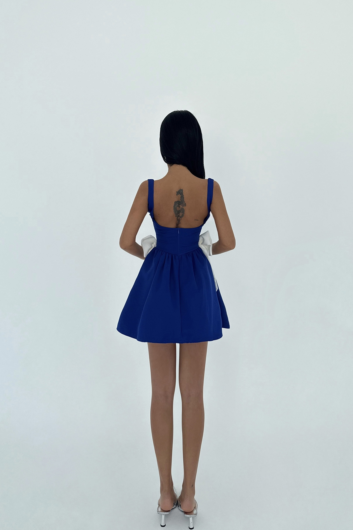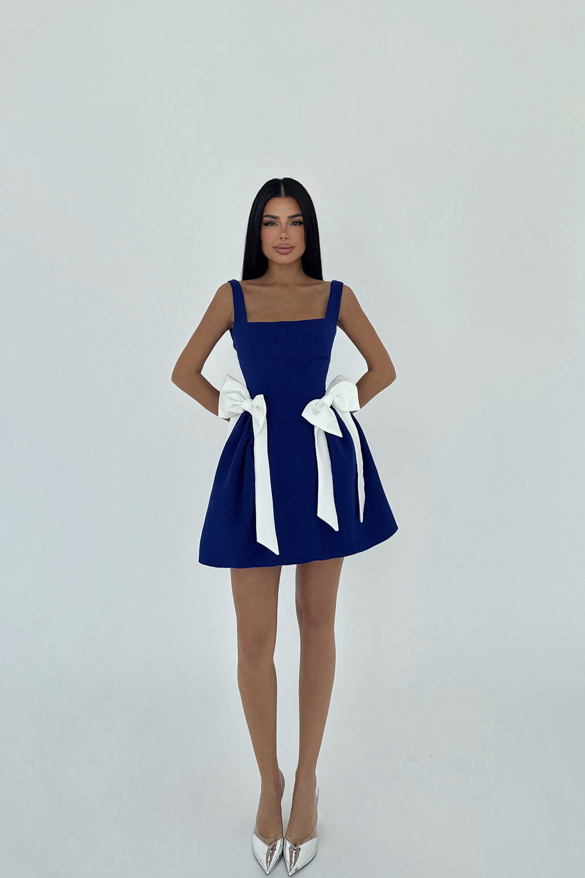 Lacivert Nellie Fiyonk Detaylı Mini Elbise