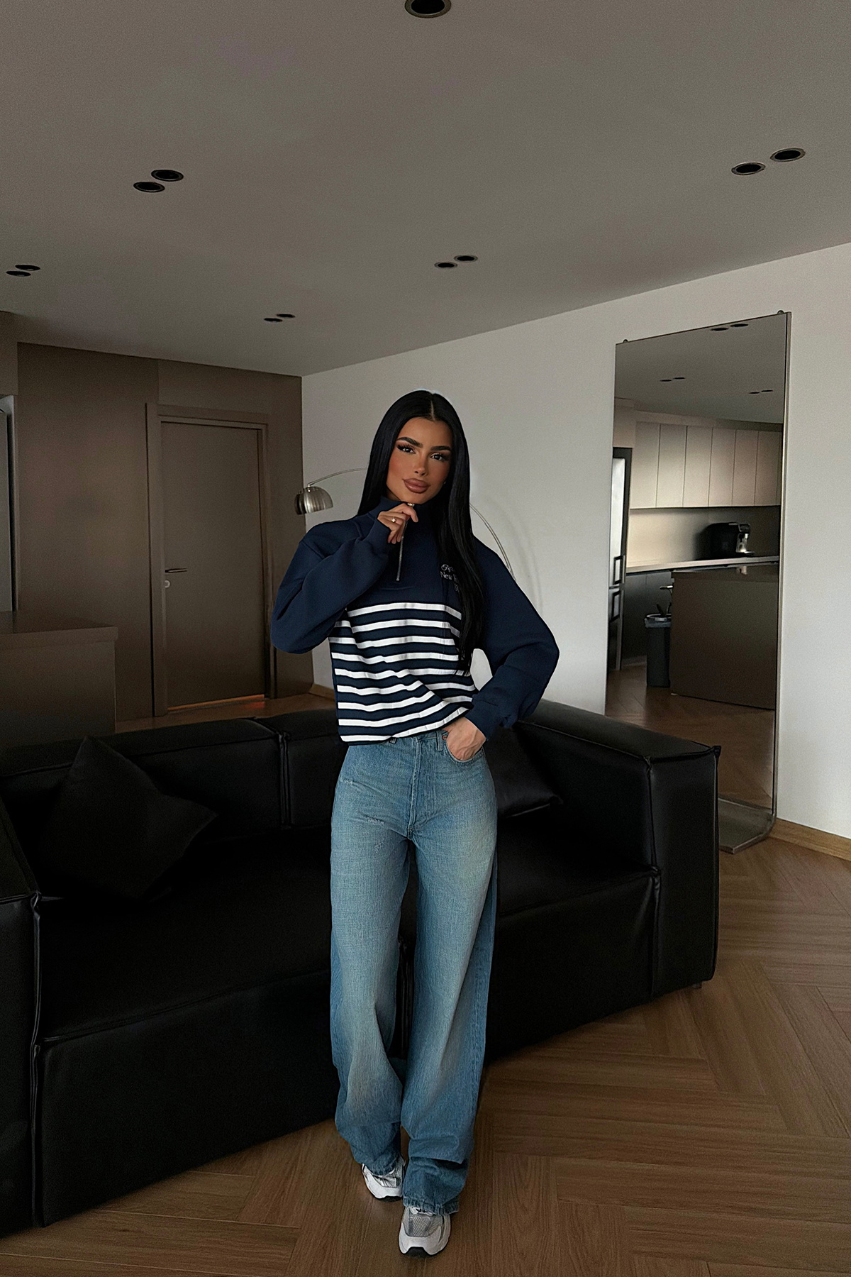 Fermuarlı yaka detayıyla pratik kullanım sunan bu sweatshirt, gövde kısmındaki çizgili panel ile sportif ve modern bir görünüm kazandırır. Rahat kalıbı sayesinde gün boyu konfor sağlarken, yumuşak dokulu kumaşıyla kombinlere dinamik bir hava katar.