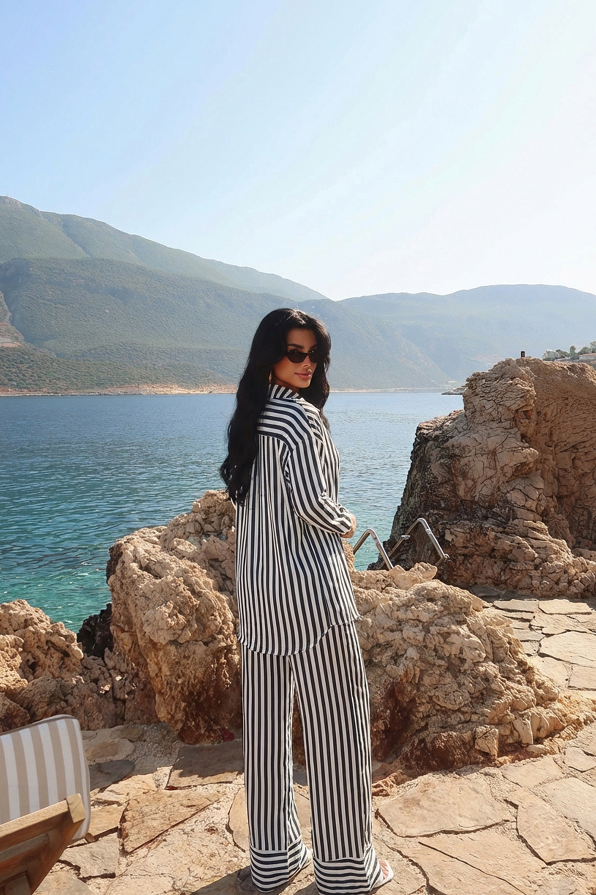 Lacivert Aleida Çizgili Takım
