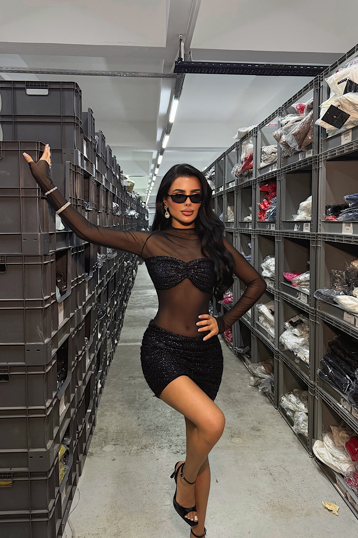 Transparan tül üst tasarımı ve payet işlemeli mini etek detayıyla öne çıkan bu elbise, gece şıklığını iddialı bir duruşla tamamlar. Kalp yaka formu göğüs hattını zarif şekilde vurgularken, transparan uzun kol detayı tasarıma modern ve sofistike bir hava katar. Mini boy payet etek ise ışıltılı görünümüyle tüm dikkatleri üzerine çeker.