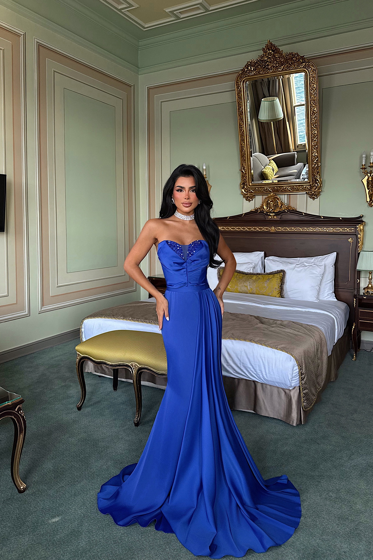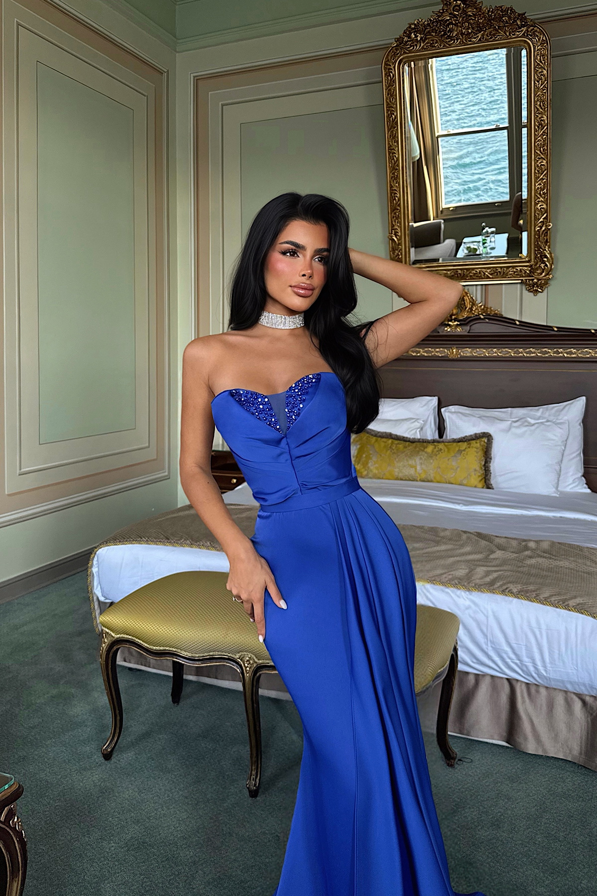 Derin lacivert rengiyle öne çıkan Elodie uzun abiye, özel davetlerde göz alıcı bir duruş sağlar. Feminen kesimi ve modern tasarımı, şıklığınızı ön plana çıkarırken zarif bir siluet sunar. Düğün, nişan ve gala gibi özel günlerde stilinizi etkileyici ve elegant bir şekilde tamamlar.