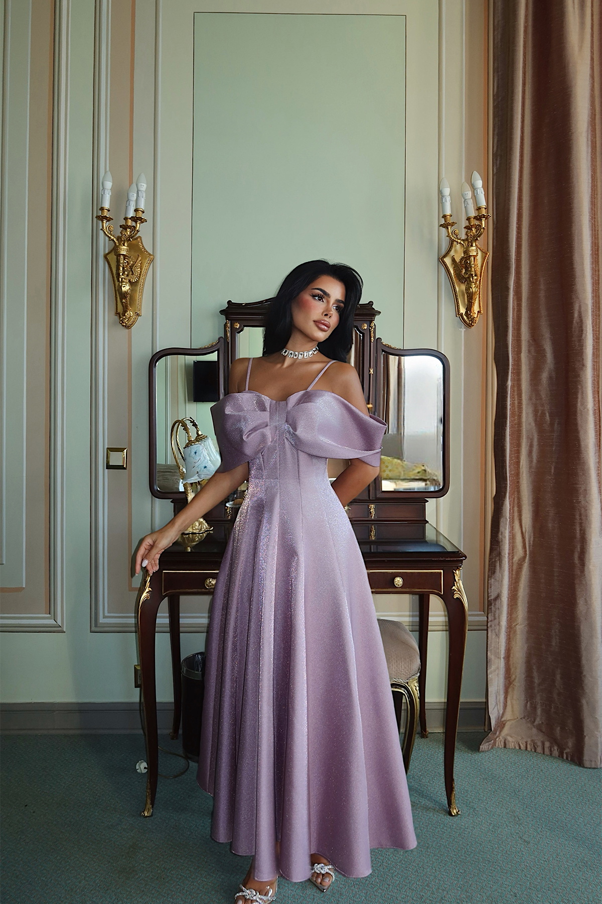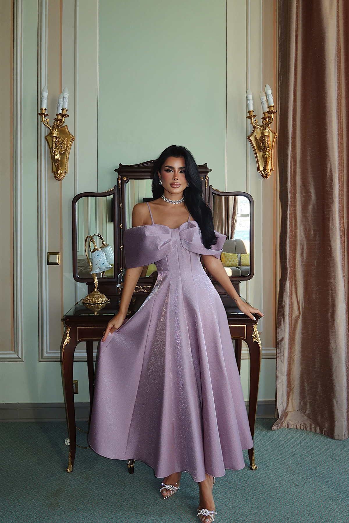Lila Midias Midi Boy Abiye – Romantik ve Zarif Şıklık