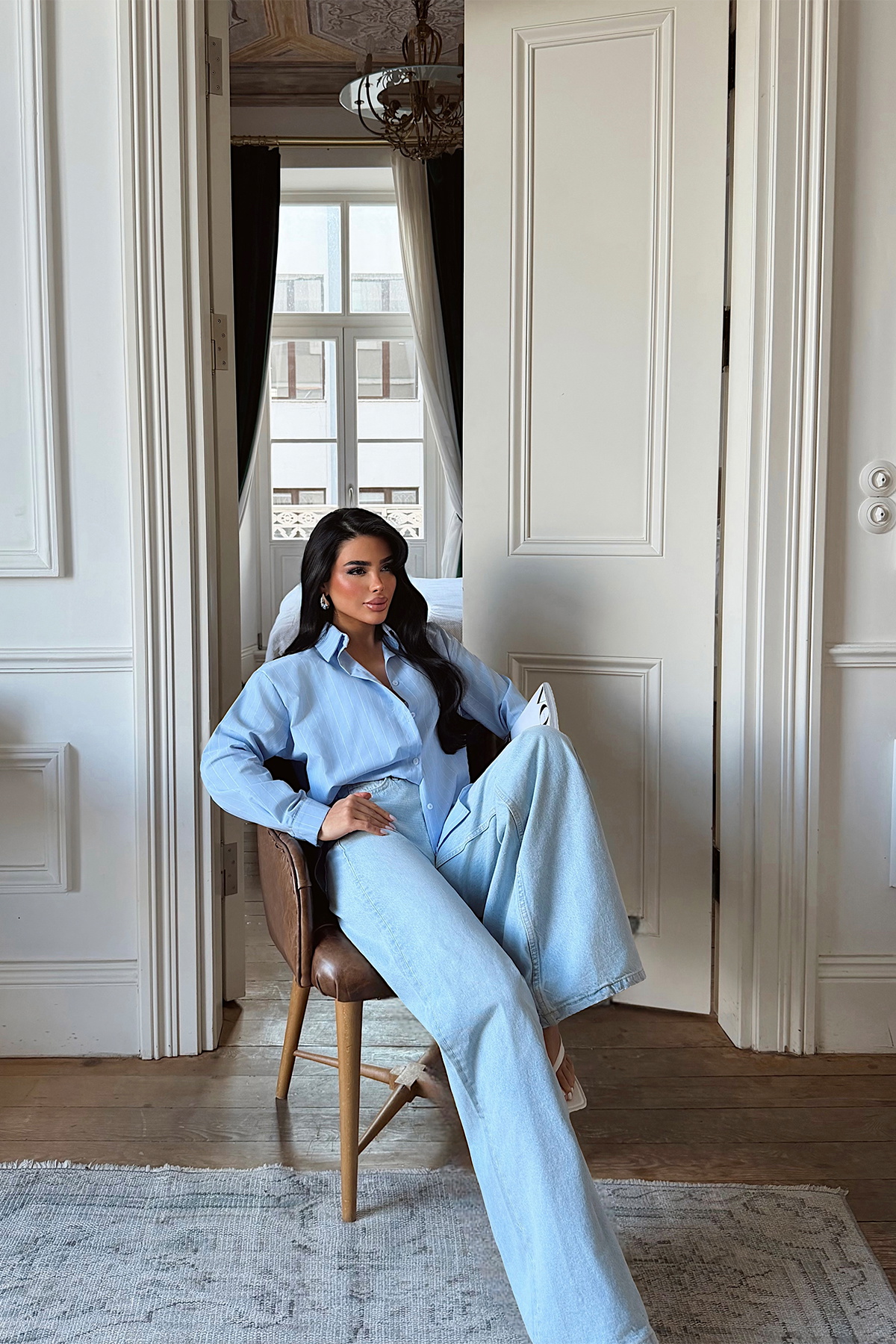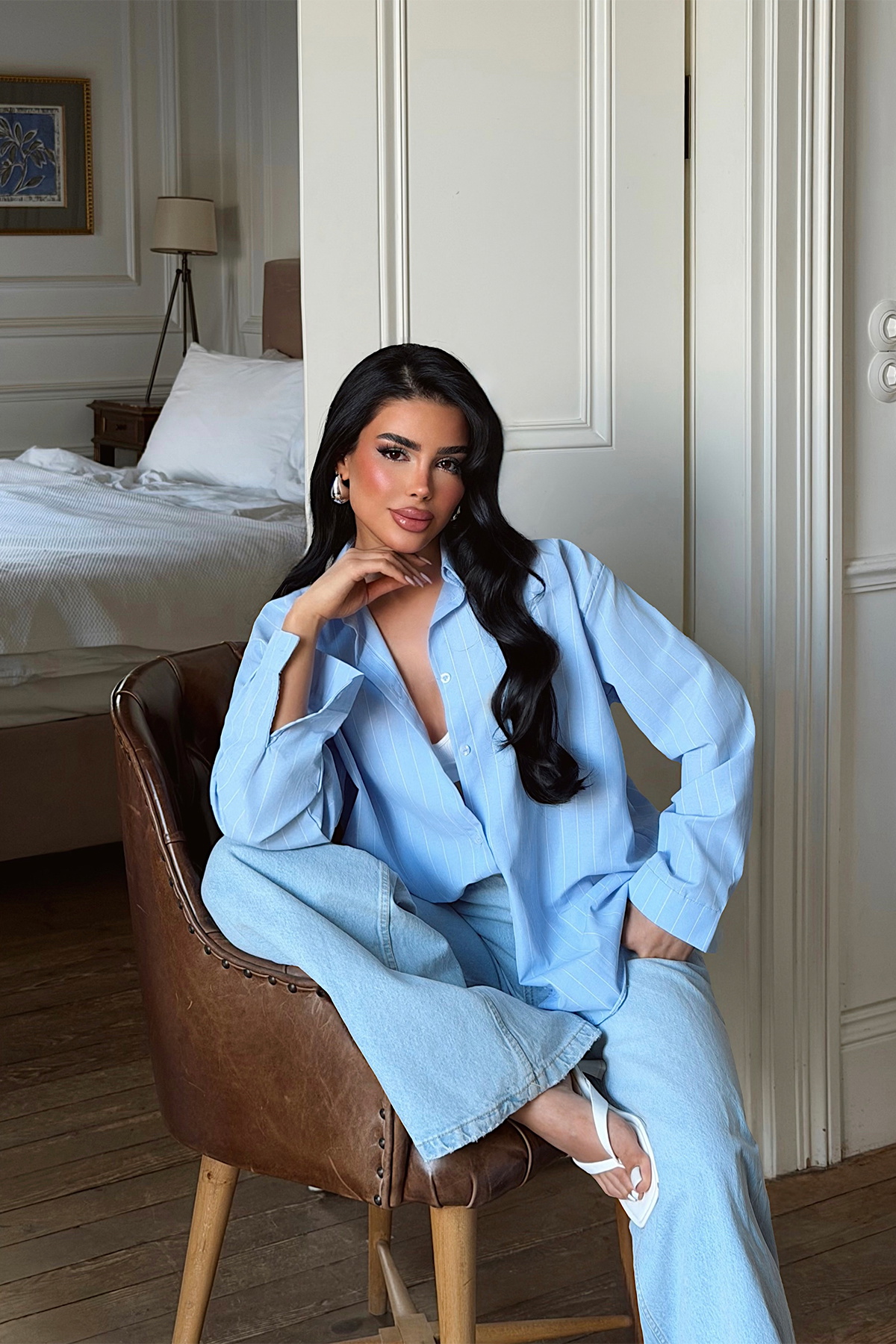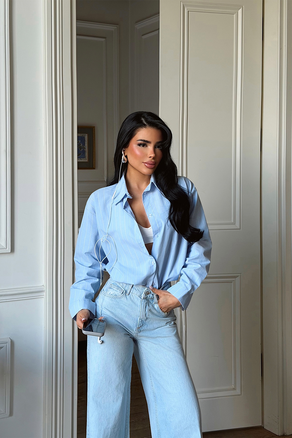 Mavi Çizgili Önü Düğmeli Gömlek