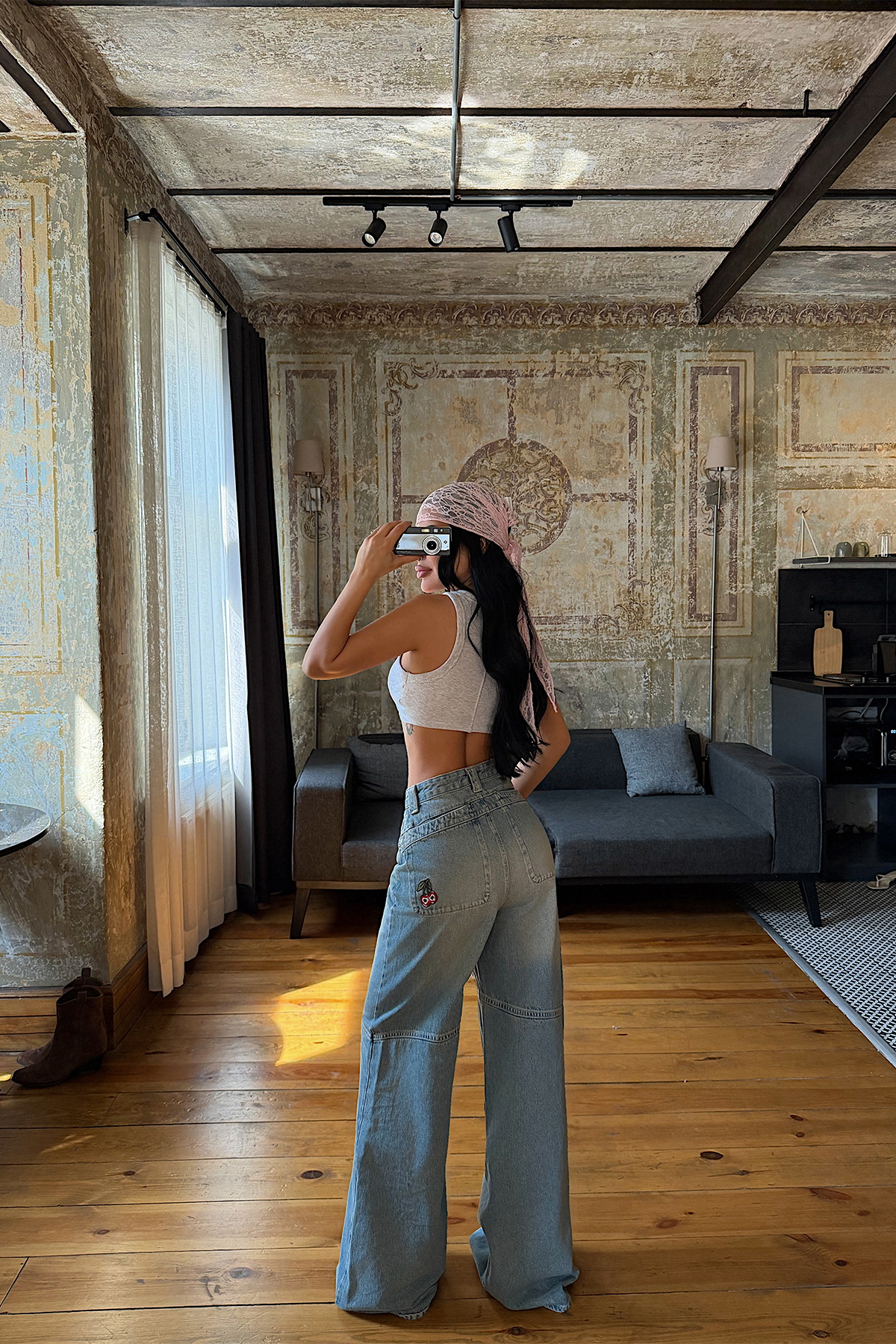 Denim kumaş yapısı ile gün boyu formunu koruyan bir kullanım sunar. Yüzeyindeki hafif yıkama efekti ile doğal bir görünüm oluşturur.