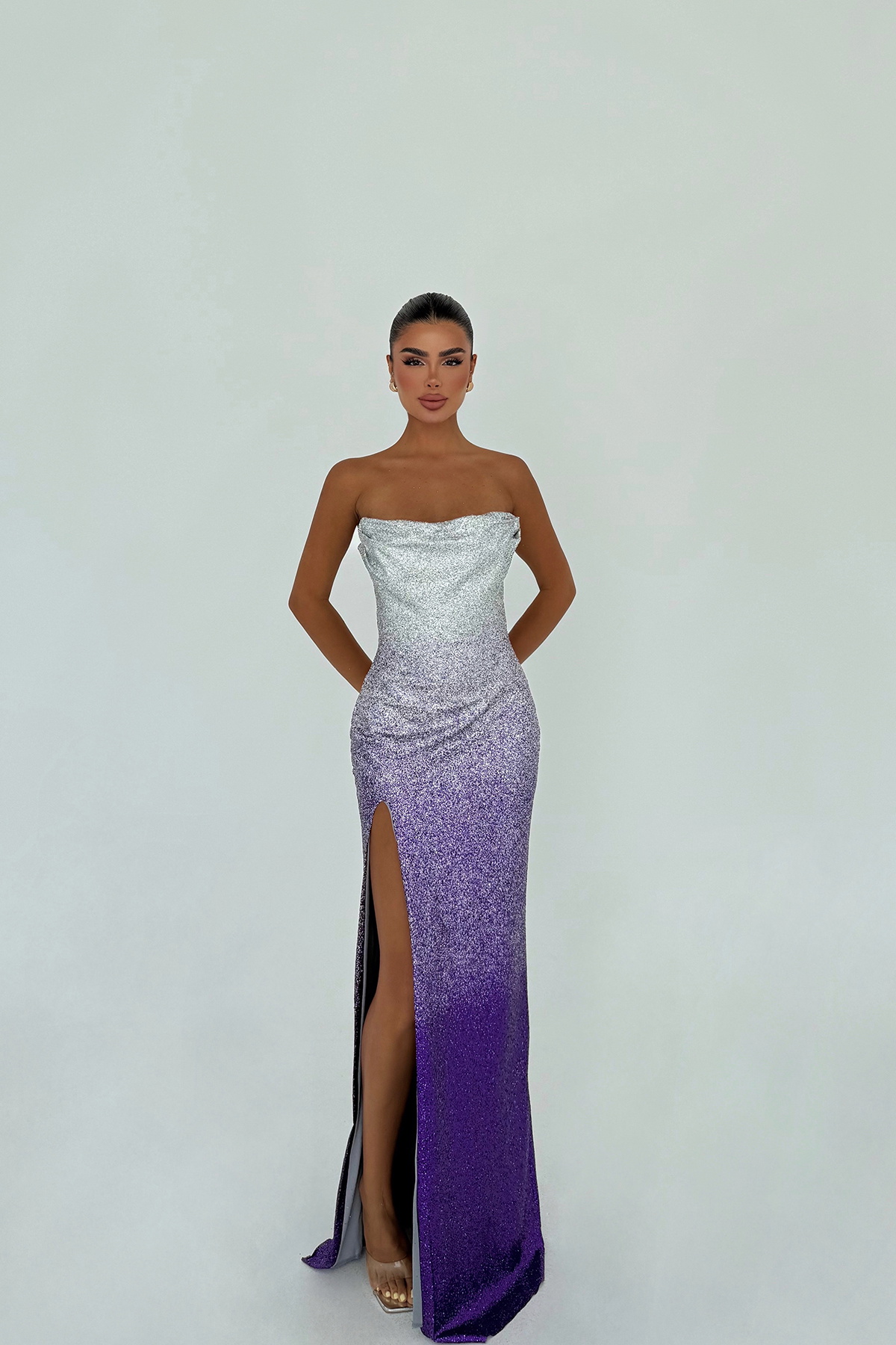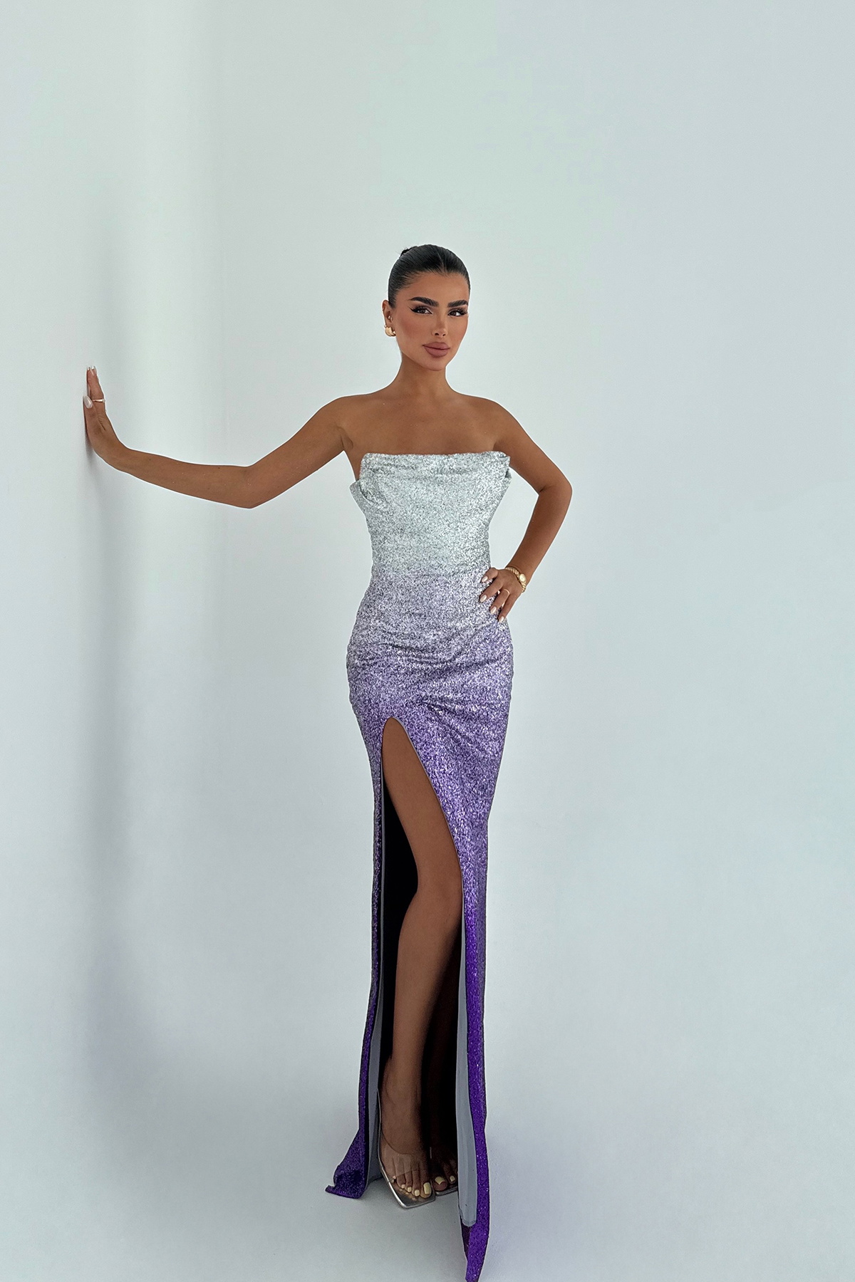 Mor Toulon Uzun Yırtmaçlı Elbise
