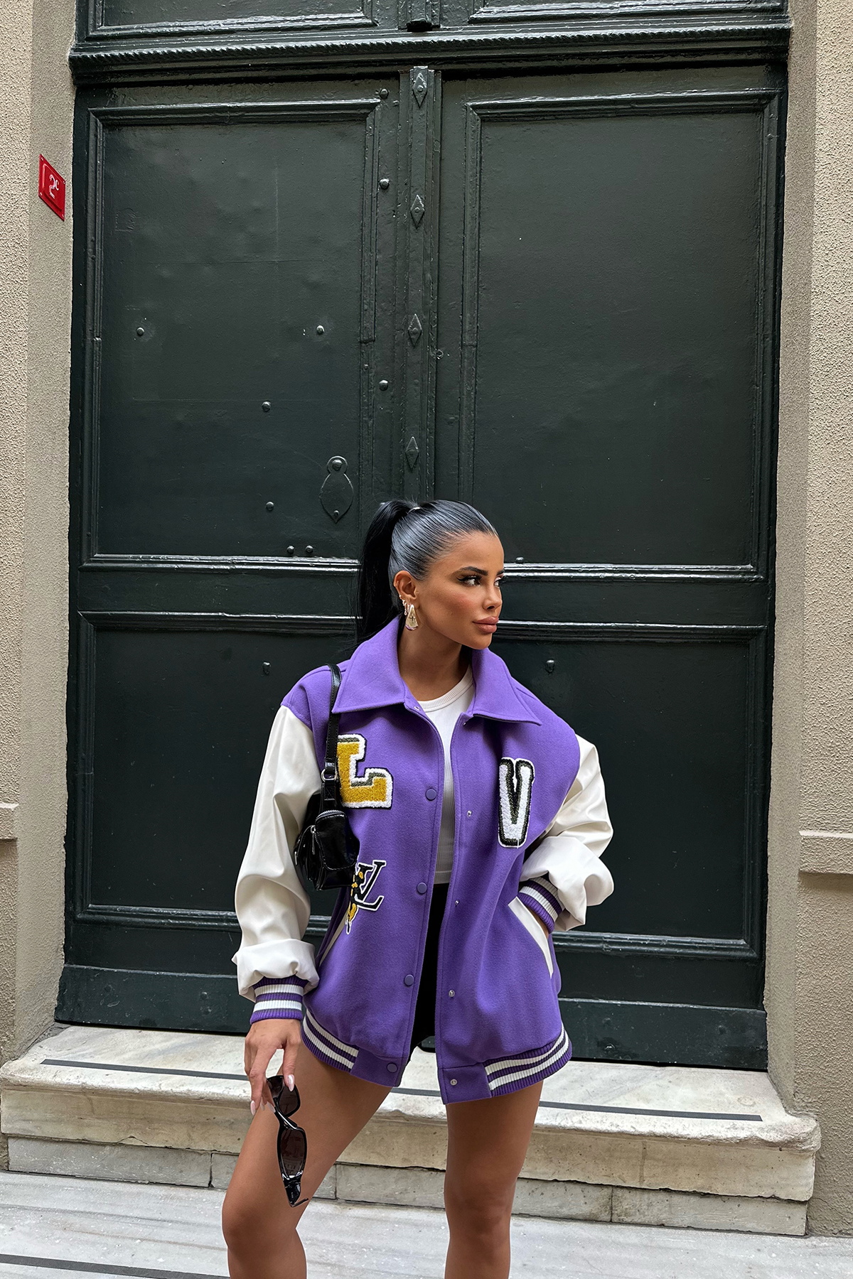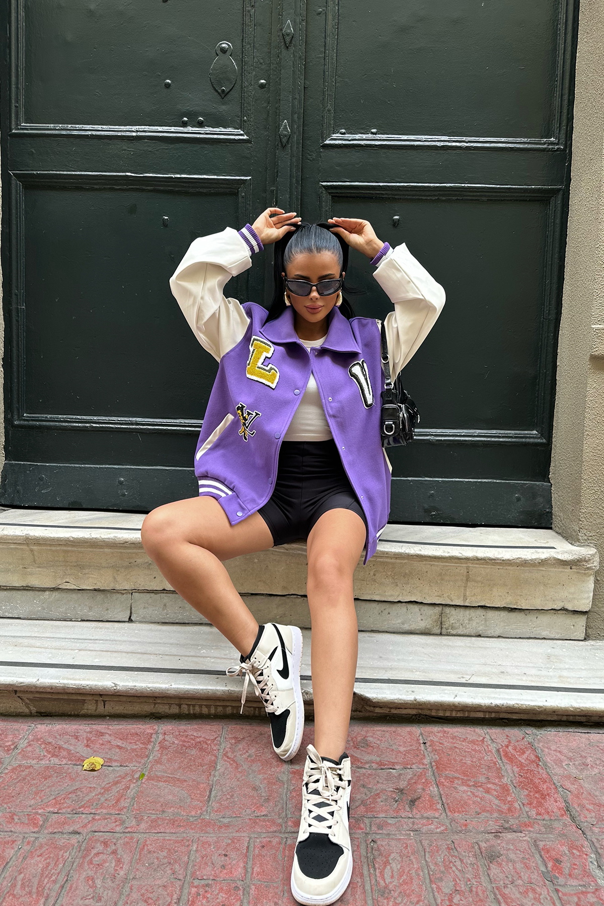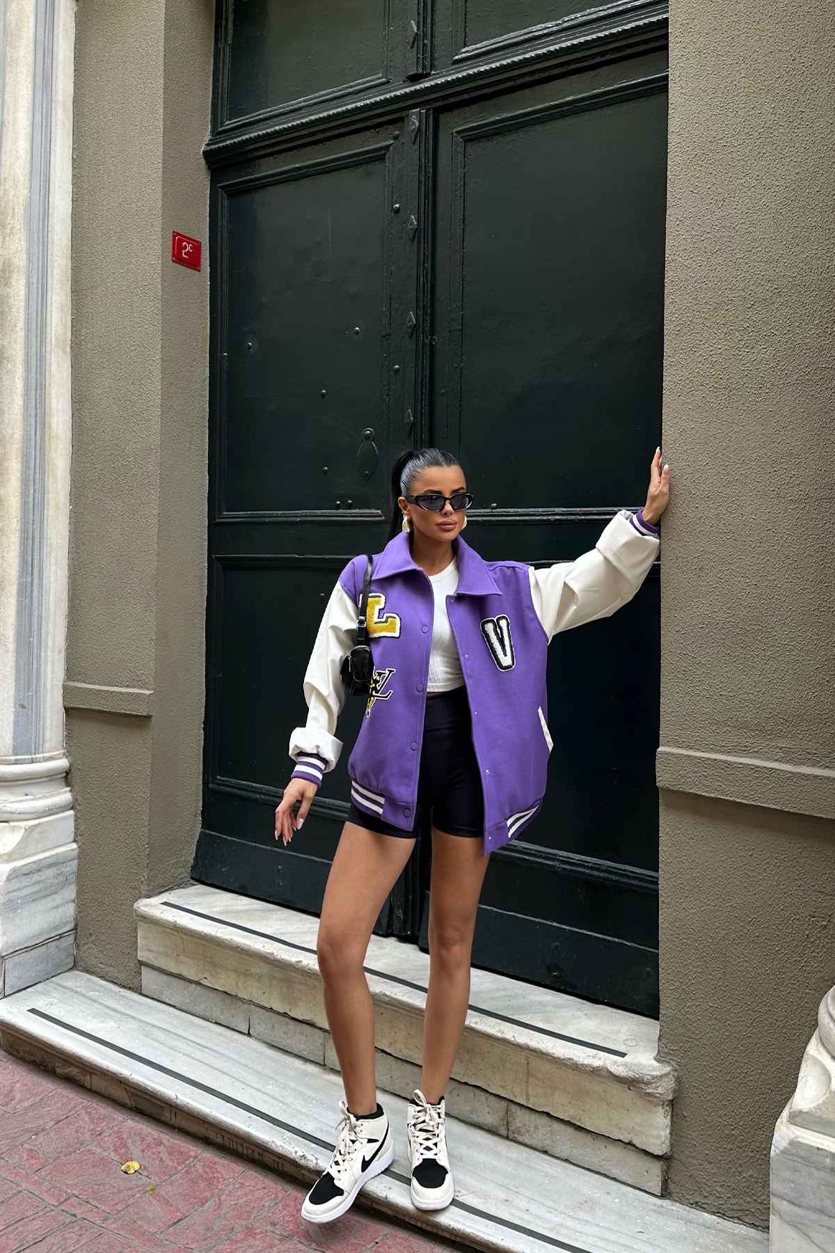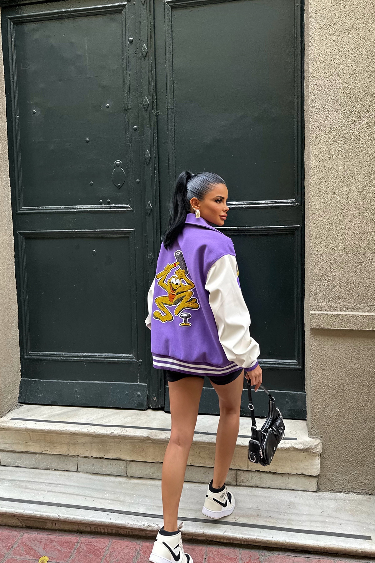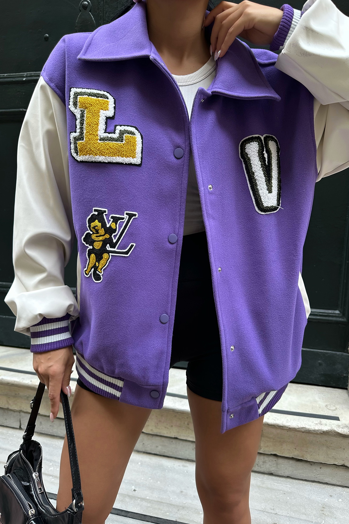 Mor Önü Baskılı Kolej Ceket