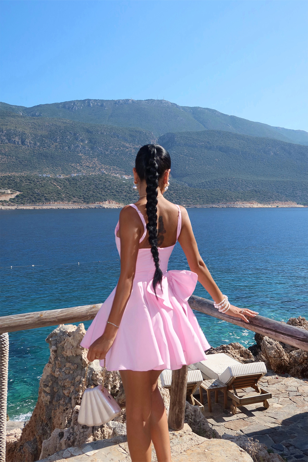 Pembe Nolan Arkası Fiyonk Detaylı Mini Elbise ATE-2947
