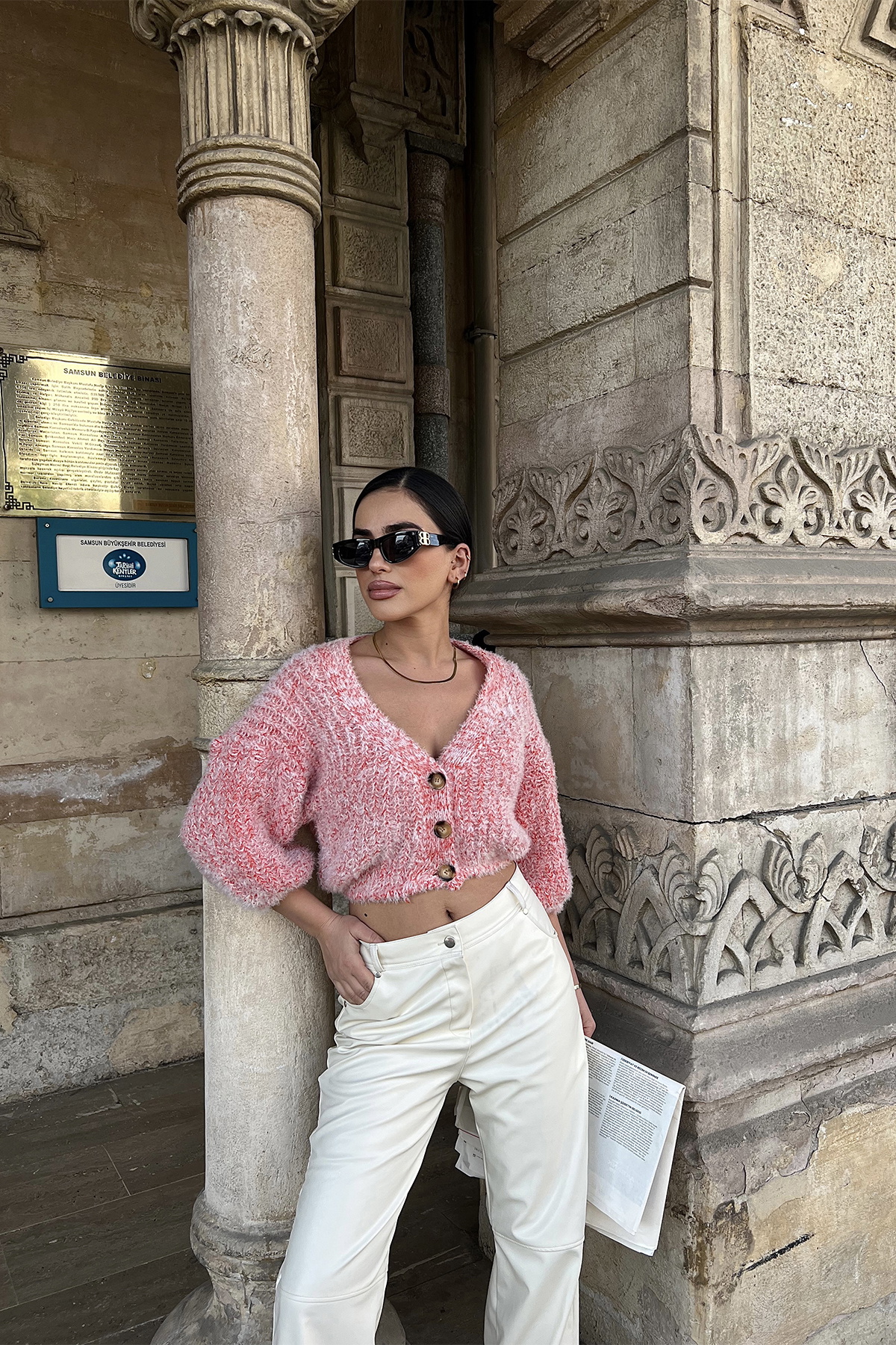 Pembe Önü Düğmeli Hırka