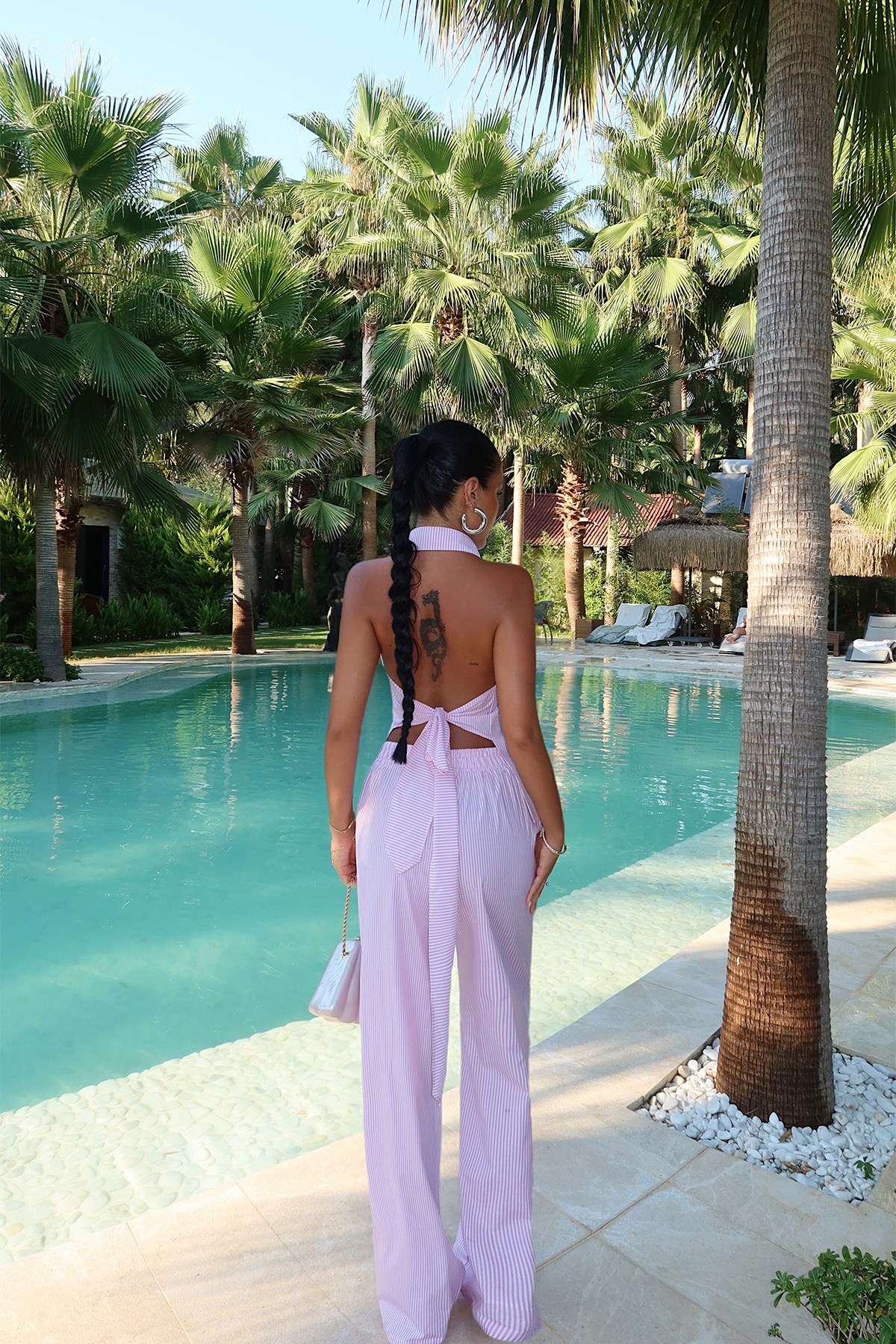 Pembe Moxie Çizgili Arkadan Bağlamalı Takım – Şık ve Rahat Tasarım