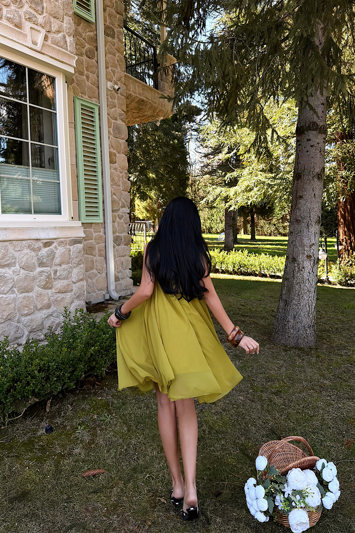 İnce askılı ve dökümlü formuyla öne çıkan elbise, hafif kumaşı sayesinde gün boyu konforlu bir kullanım sunar. Rahat kalıbı vücudu sıkmadan sararken, sade ve zarif duruşu hem günlük hem tatil kombinleri için ideal bir görünüm oluşturur.