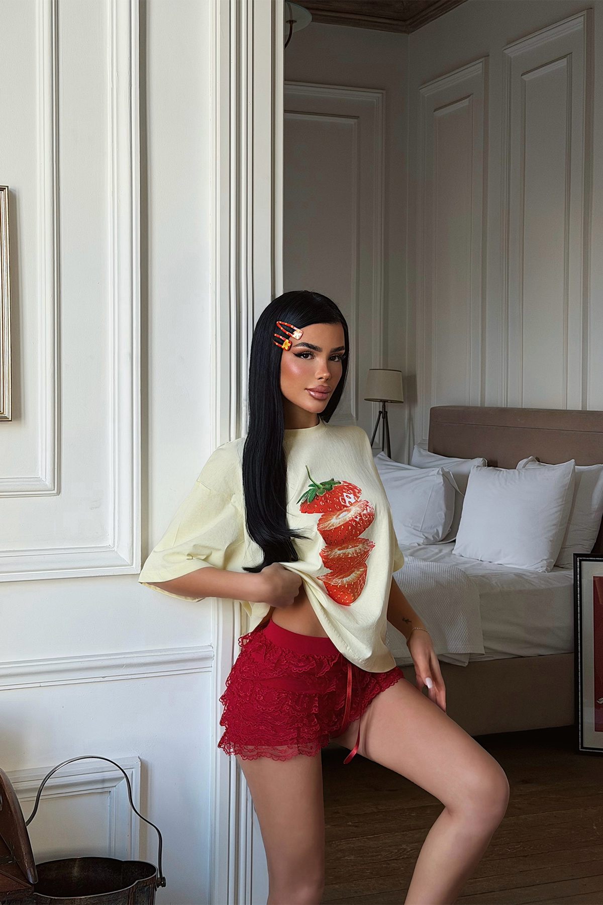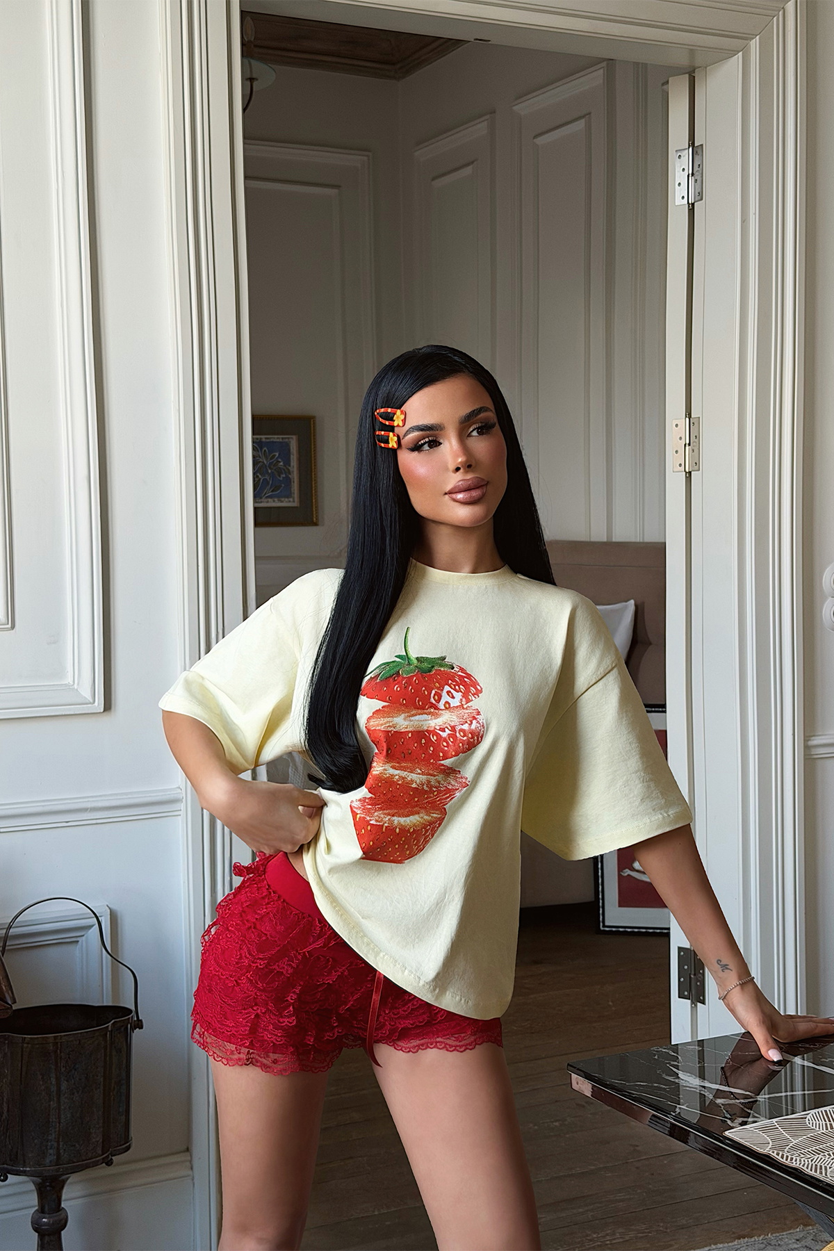 Sarı Çilek Baskılı Tişört