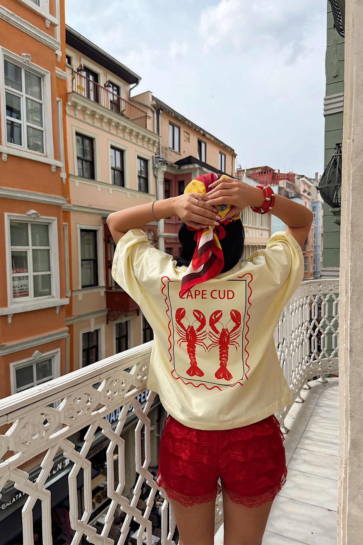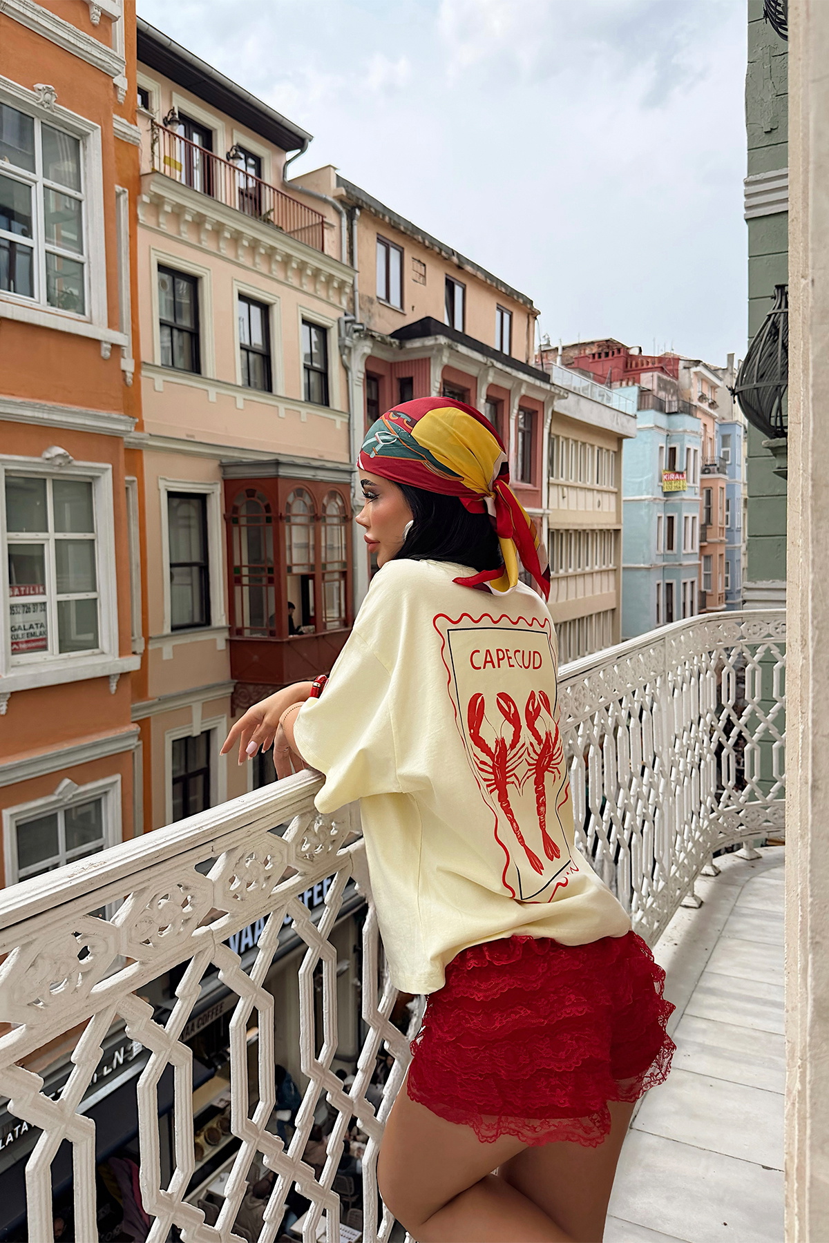 Arka kısmındaki yengeç figürlü baskı tasarıma güçlü bir karakter katarken, kontrast görünümü ile fark yaratır.