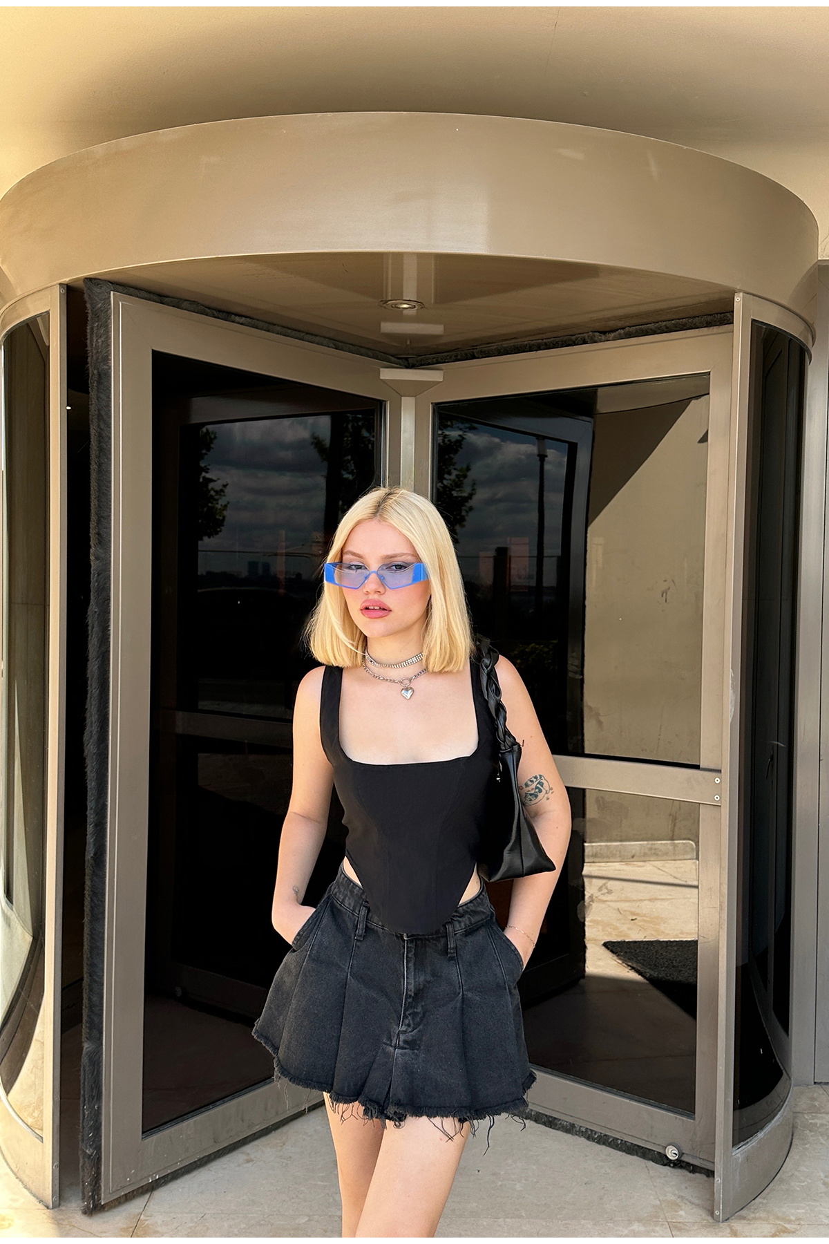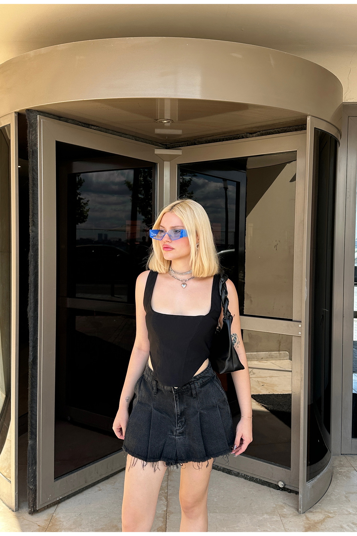 Siyah Askılı Crop Top ATE7775