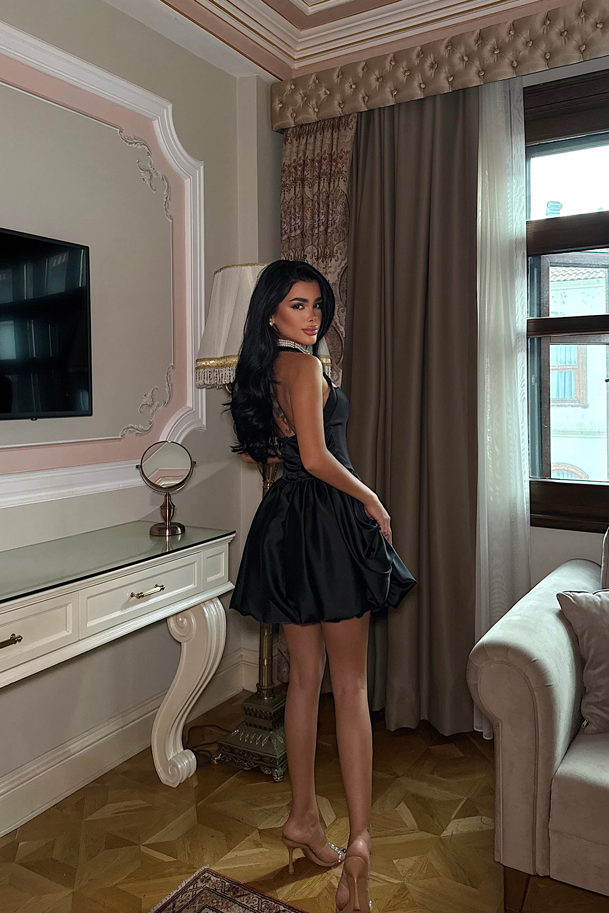 Siyah Estella Mini Etek Ucu Balon Elbise