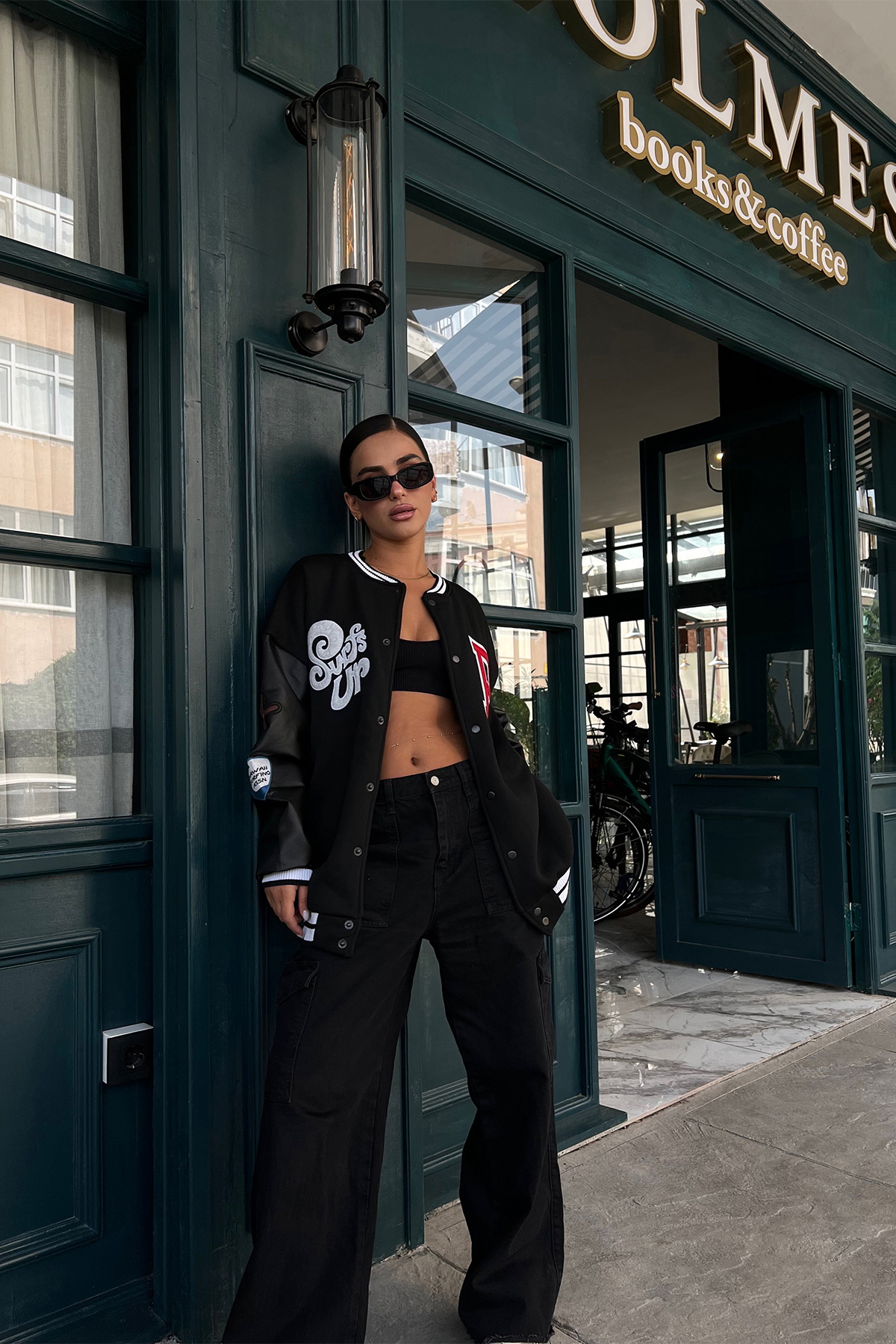 Siyah Kolları Deri Kolej Ceket