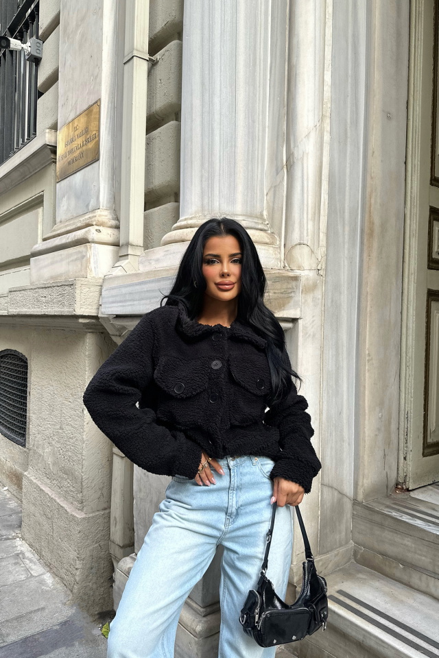 Siyah Cep Detay Düğmeli Ceket