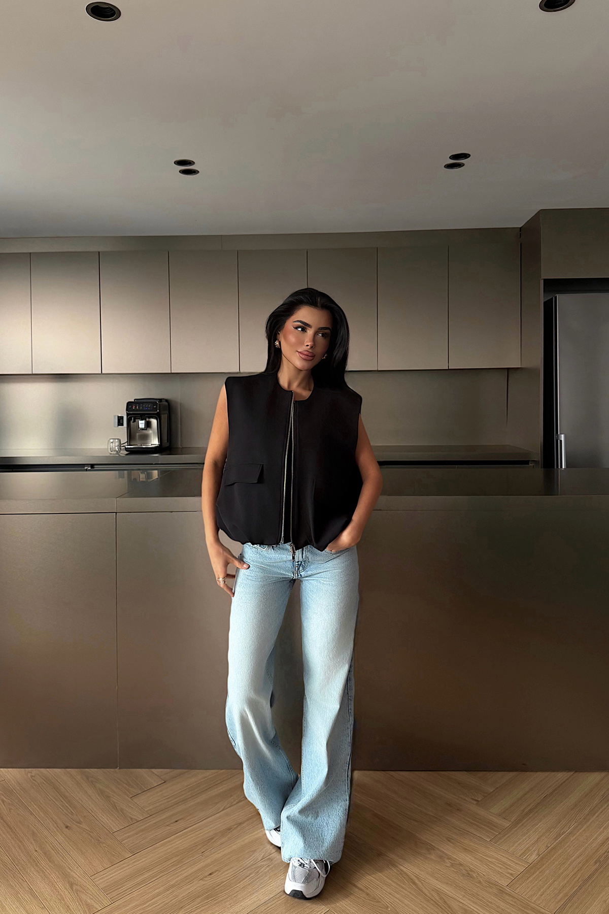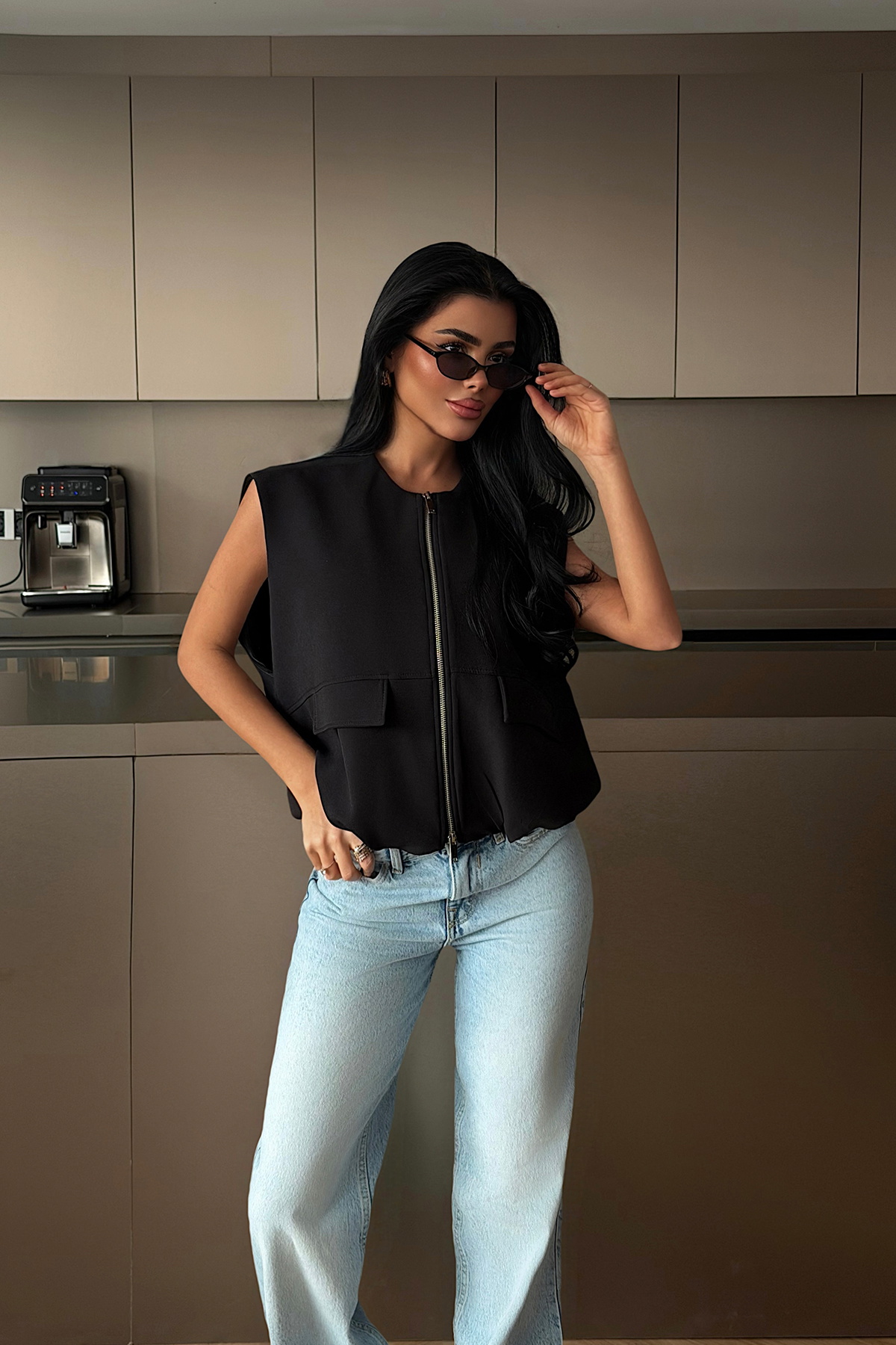 Fermuarlı tasarımı ve tok duruşuyla öne çıkan yelek, sade ve modern bir siluet sunar. Rahat kesimi sayesinde günlük kombinlerden şehir stiline kadar çok yönlü kullanım sağlarken, katmanlı kombinler için pratik ve stil sahibi bir parçadır.