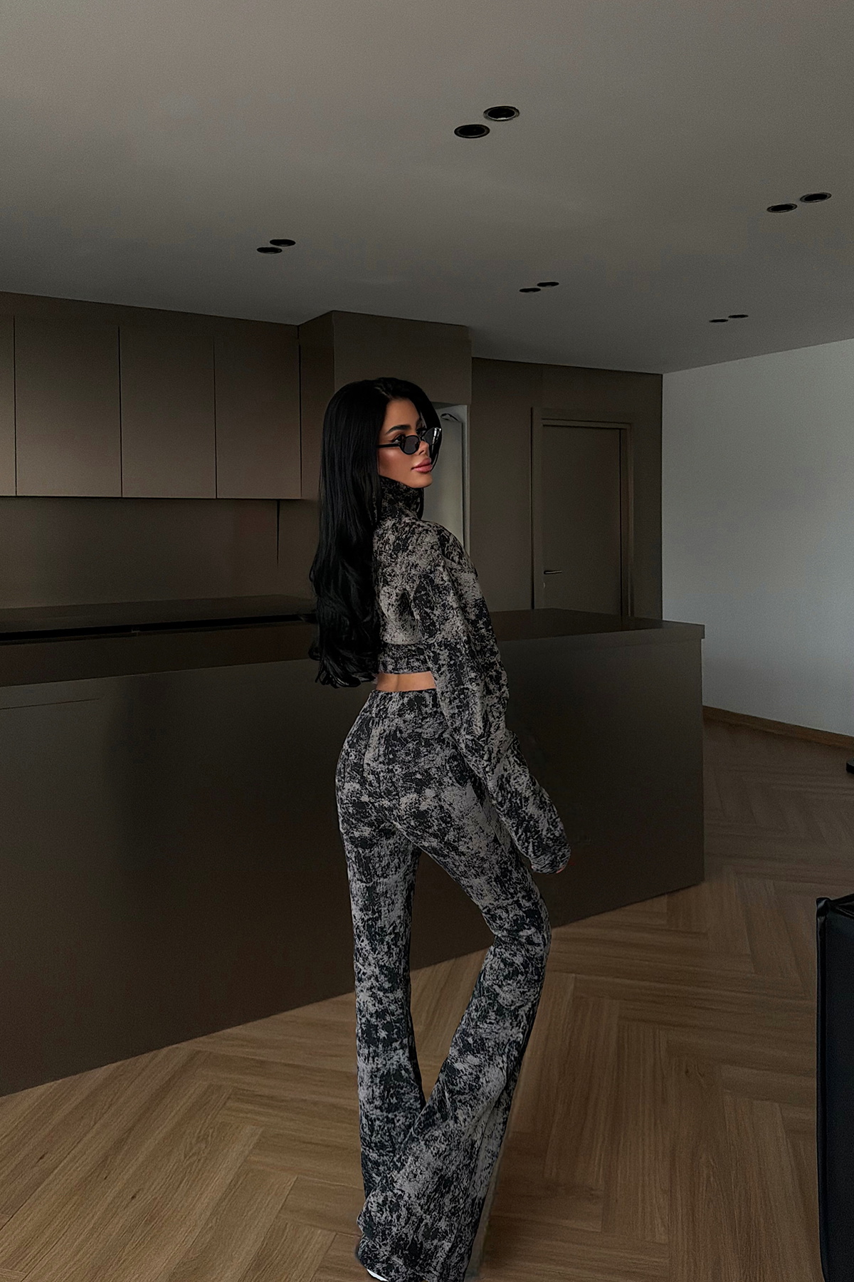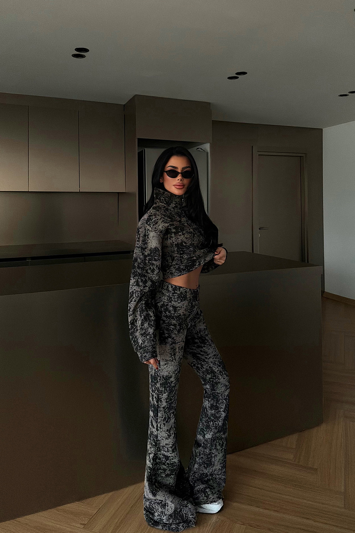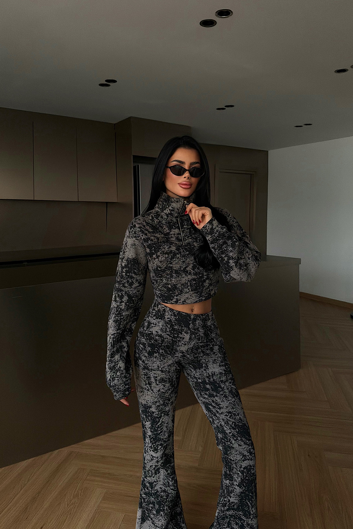Modern ve sportif çizgileriyle hem konfor hem şıklık sunar. İnce desen detaylarıyla sade ama dikkat çekici bir görünüm sağlayan bu takım, crop üstü sayesinde feminen bir hava katarken alt parça elastik bel ve konforlu kesimiyle gün boyu rahatlık vadeder.
