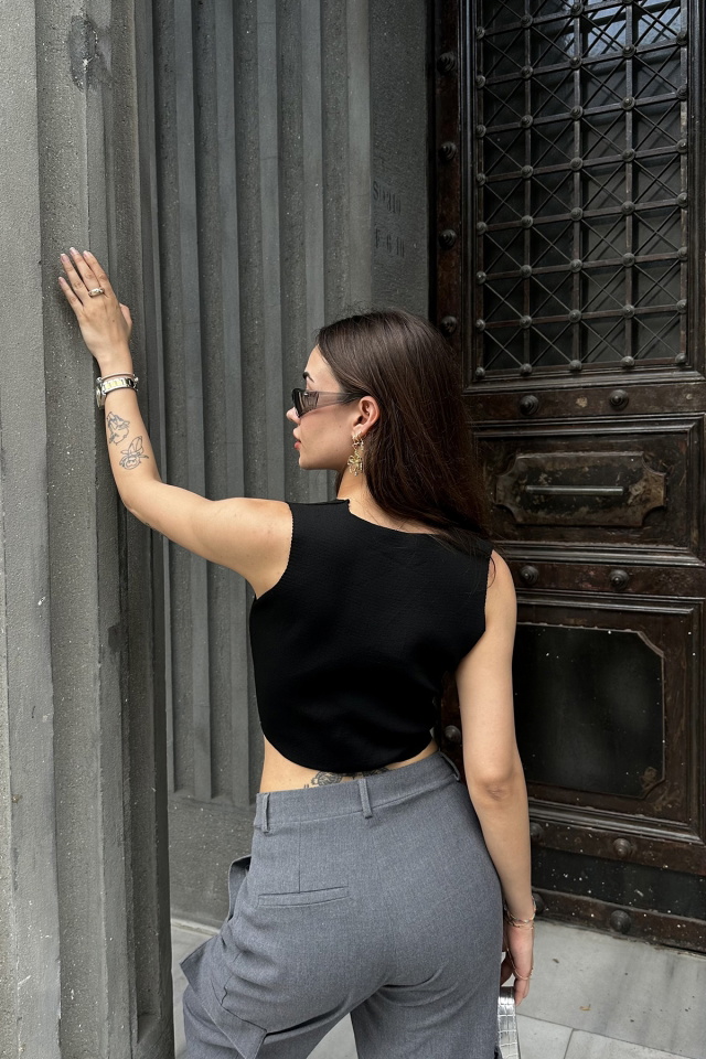 Siyah Düğme Detay Yelek