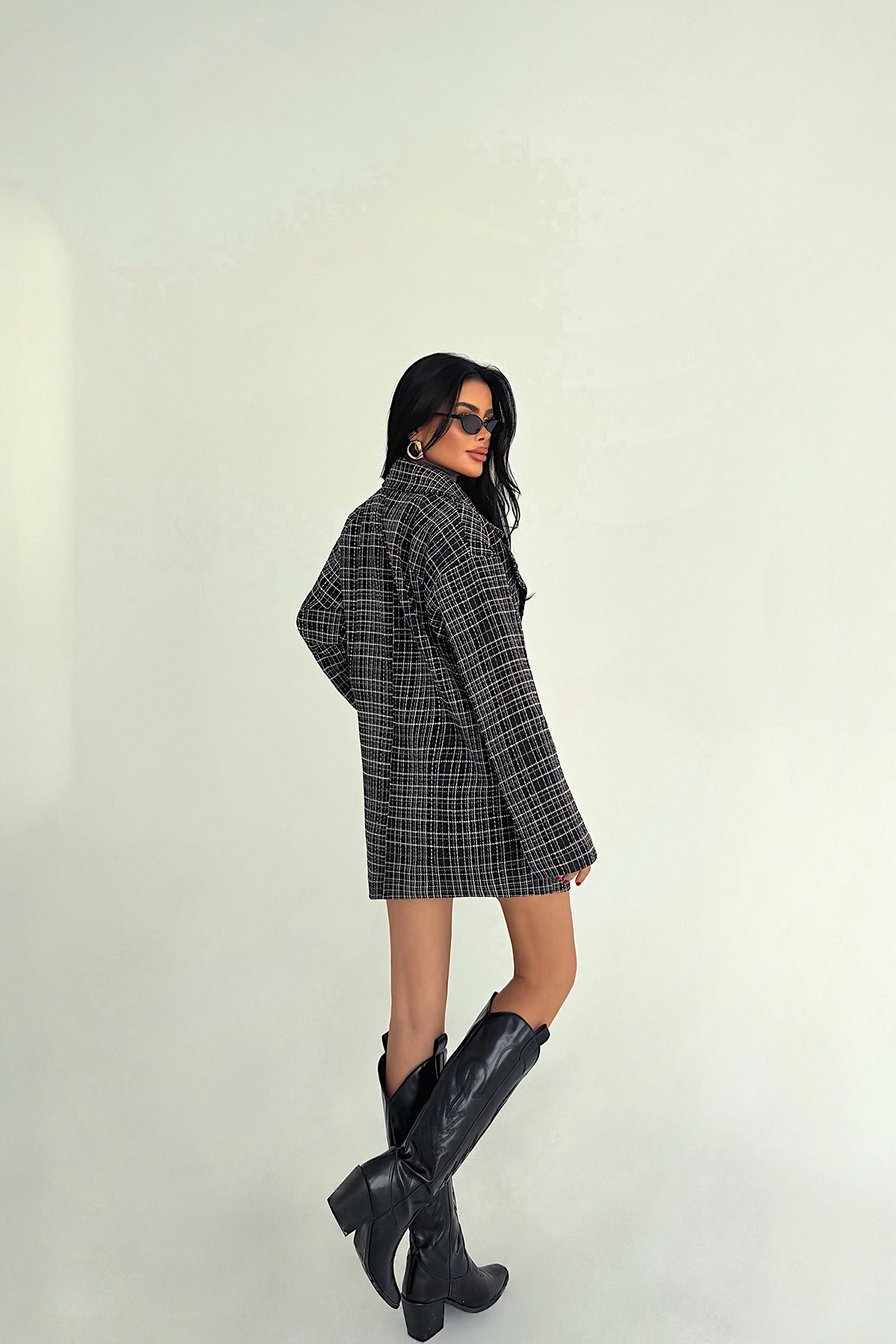 Yüzeyindeki çizgili dokusu ile tasarıma karakter katan, düğme kapama detayıyla öne çıkan dış giyim parçasıdır. Orta uzunluk formu ve temiz dikiş hatlarıyla dengeli bir siluet oluştururken, yapısal kesimi standart kalıpla birleşir. Ön bölümdeki düğme detayları cekete fonksiyonel bir vurgu kazandırır.