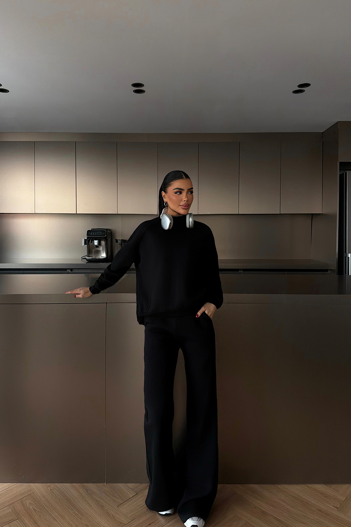 Sade ön görünümünü arkada yer alan düğme detayları ile tamamlayan özgün bir tasarıma sahiptir. Uzun kollu üst parça, arka bölüm boyunca uzanan düğmeler sayesinde tasarıma hareket ve modern bir karakter kazandırır. Rahat kalıbı gün boyu konfor sunarken, pantolonun düz paça formu takımın dengeli ve akıcı duruşunu destekler.