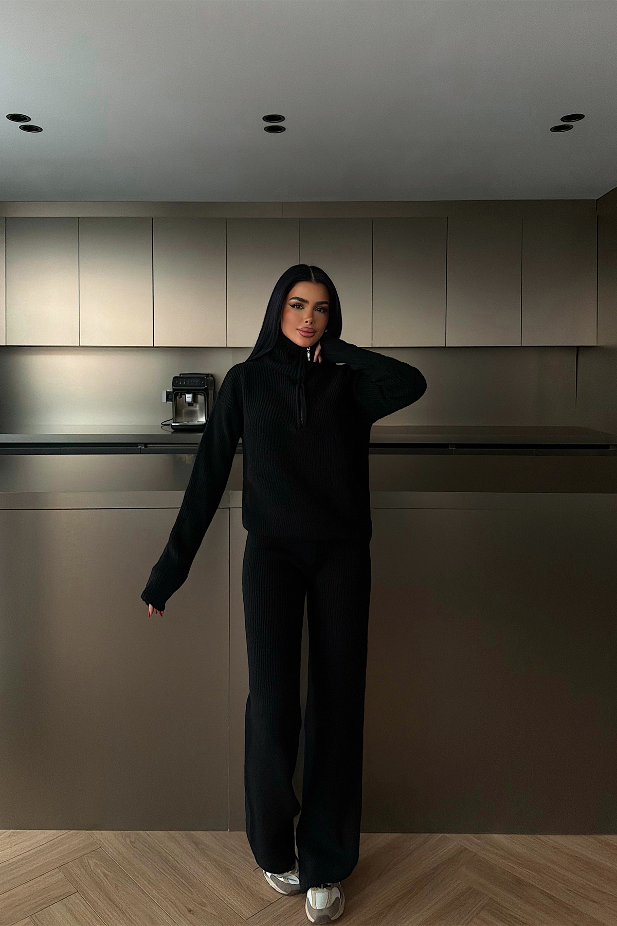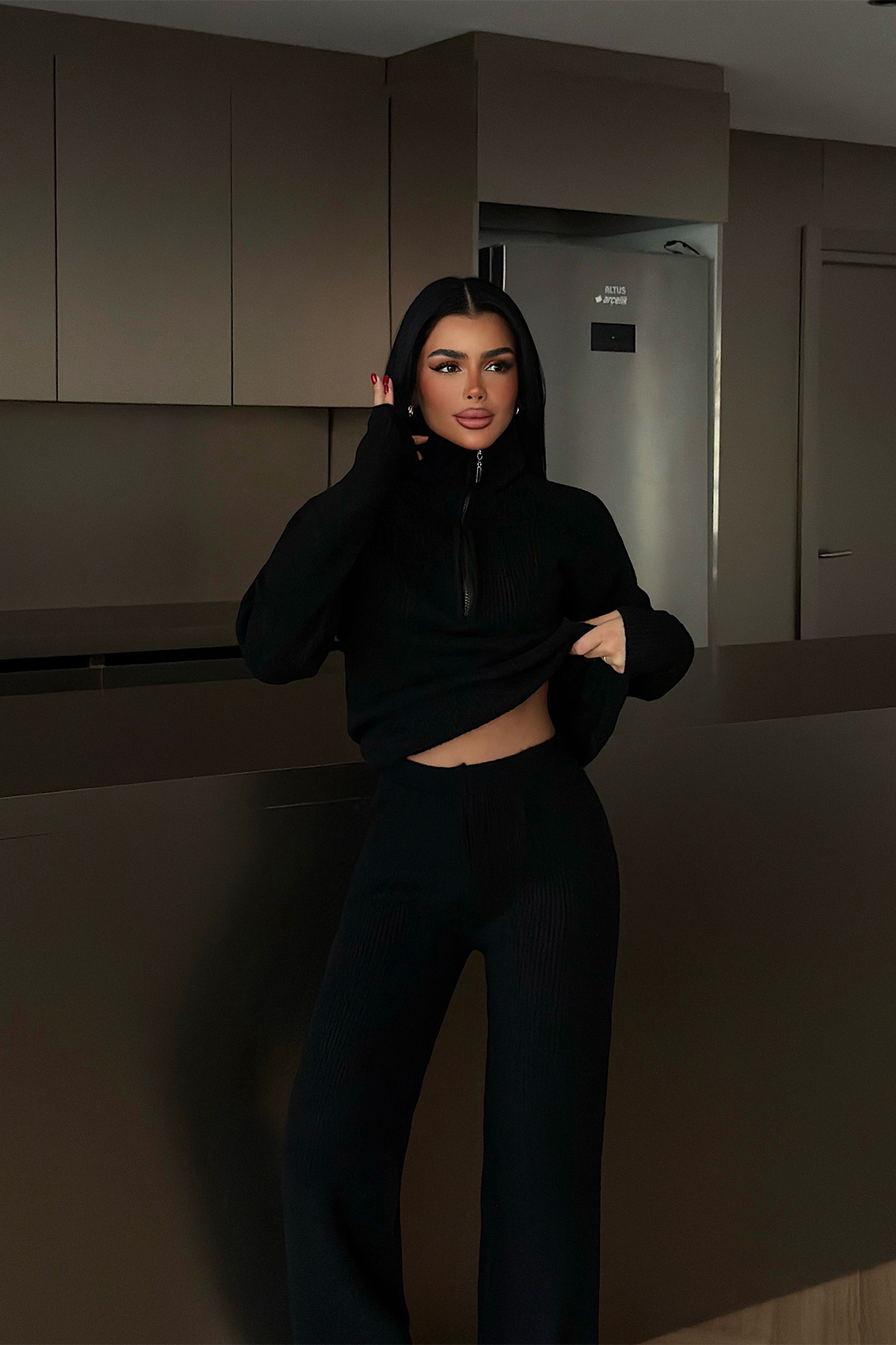 Bu modern takım, siyah renginin zarif duruşu ve fermuar detaylarıyla hem gündelik stilinize sportif bir dokunuş katıyor hem de konforu ön planda tutuyor. Gün içinde rahatça hareket etmek isteyenler için ideal bir seçim.