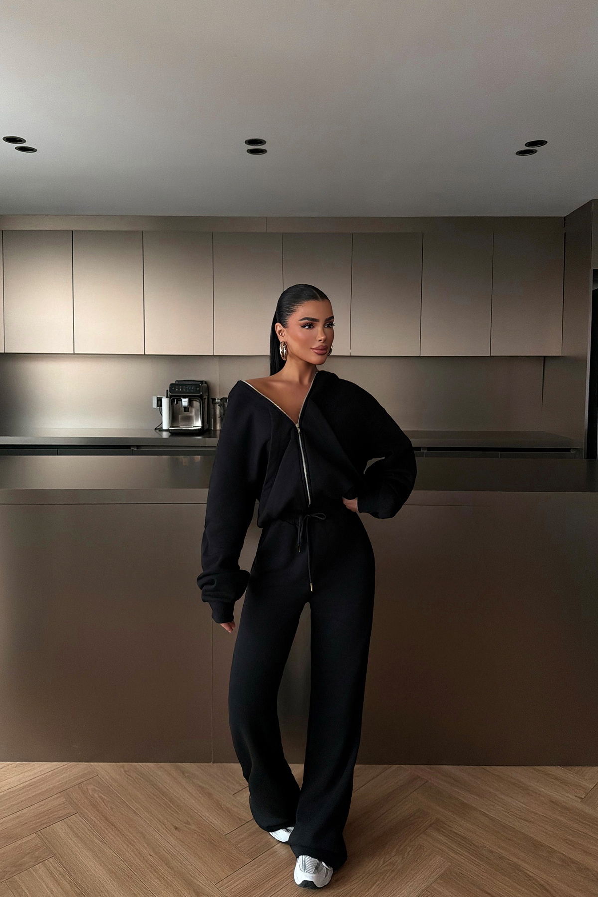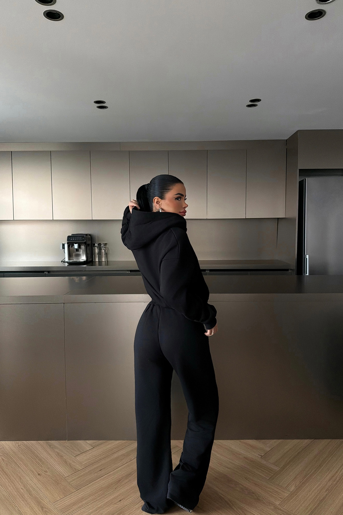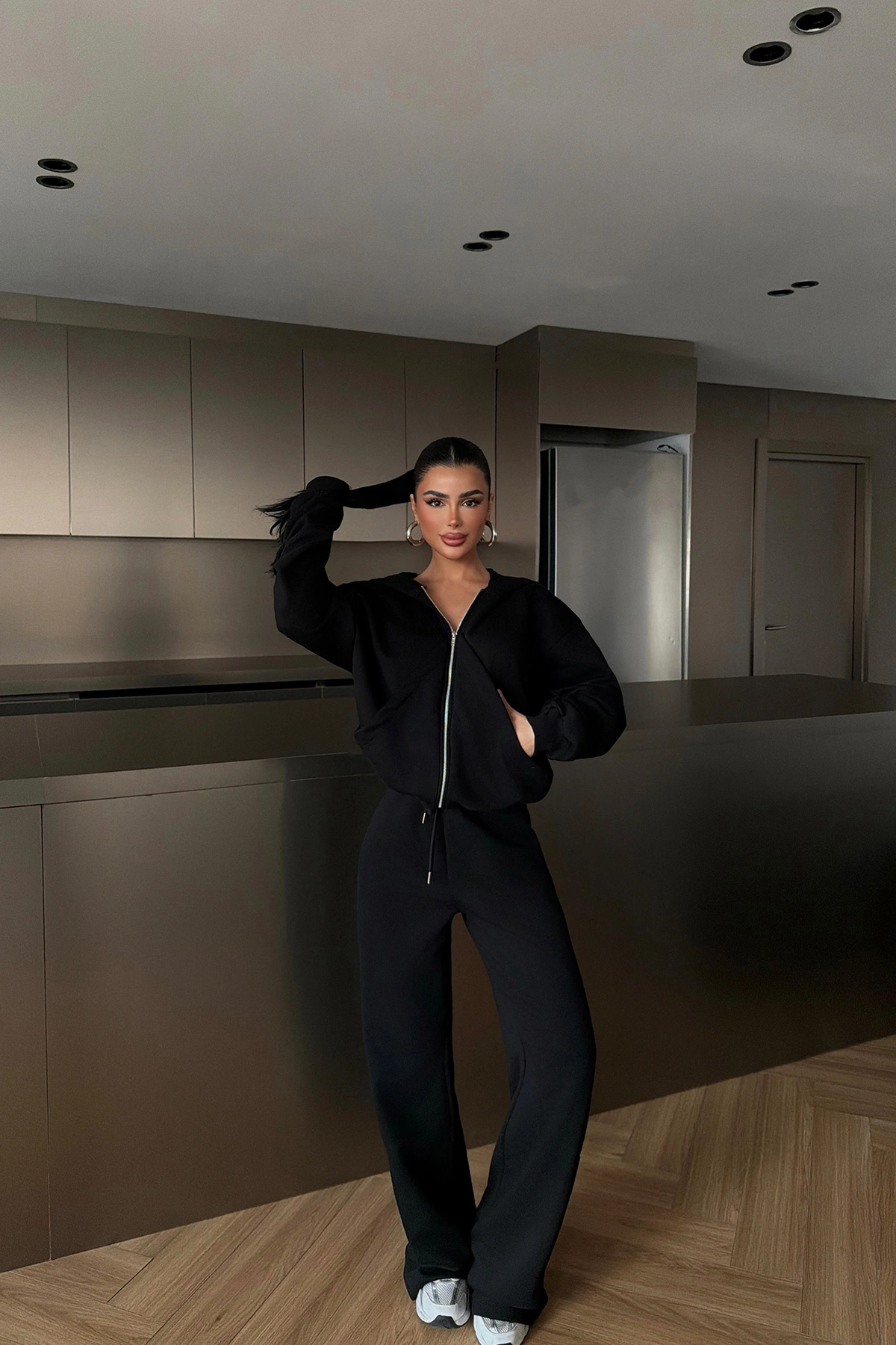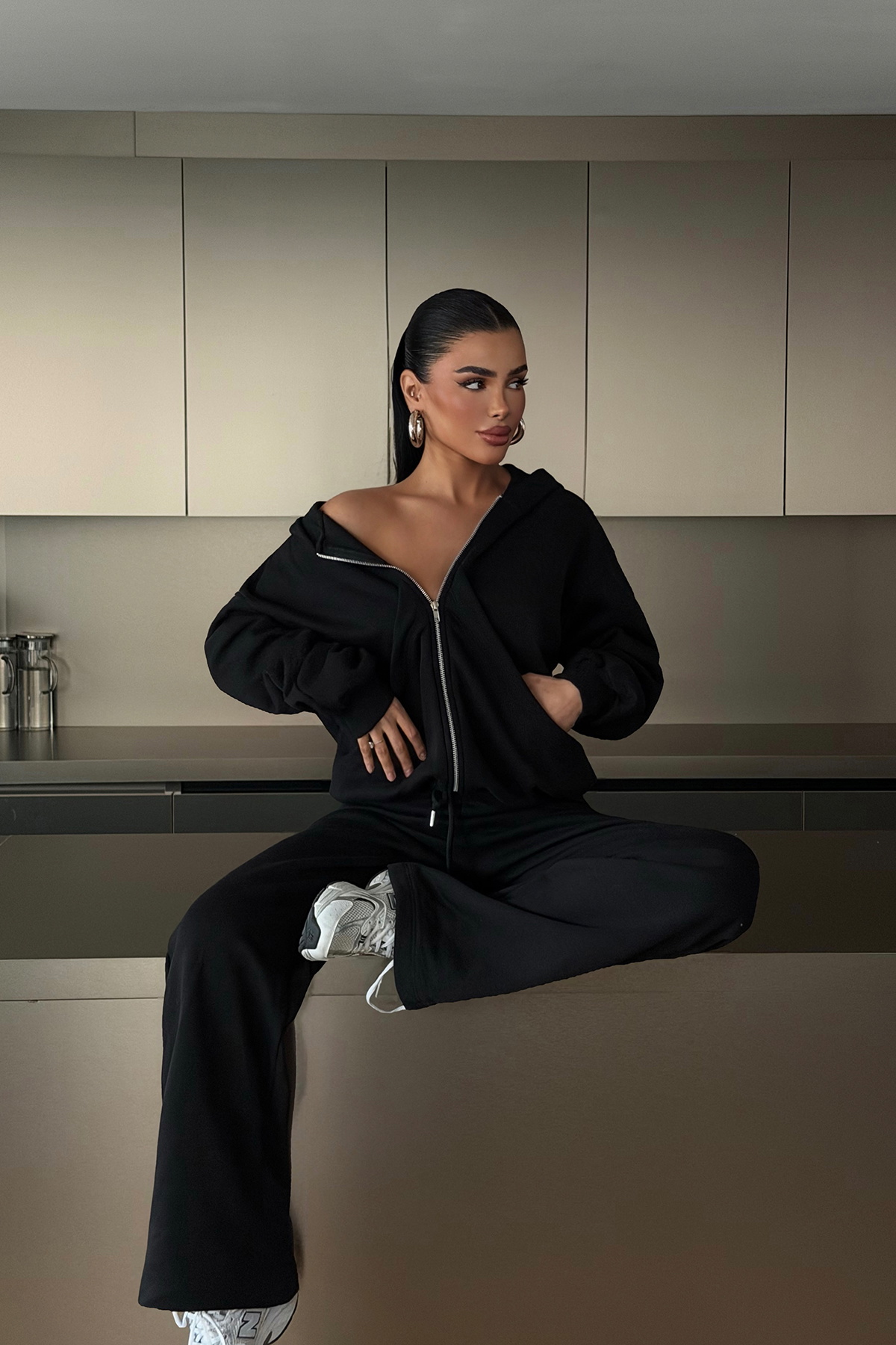 3 iplik kumaştan üretilen bu eşofman takım, yumuşak dokusu ve tok duruşuyla hem konfor hem de şıklık sunar. Fermuarlı kapüşonlu üst tasarımı sportif bir görünüm sağlarken, rahat kesim alt eşofman gün boyu hareket özgürlüğü sunar.